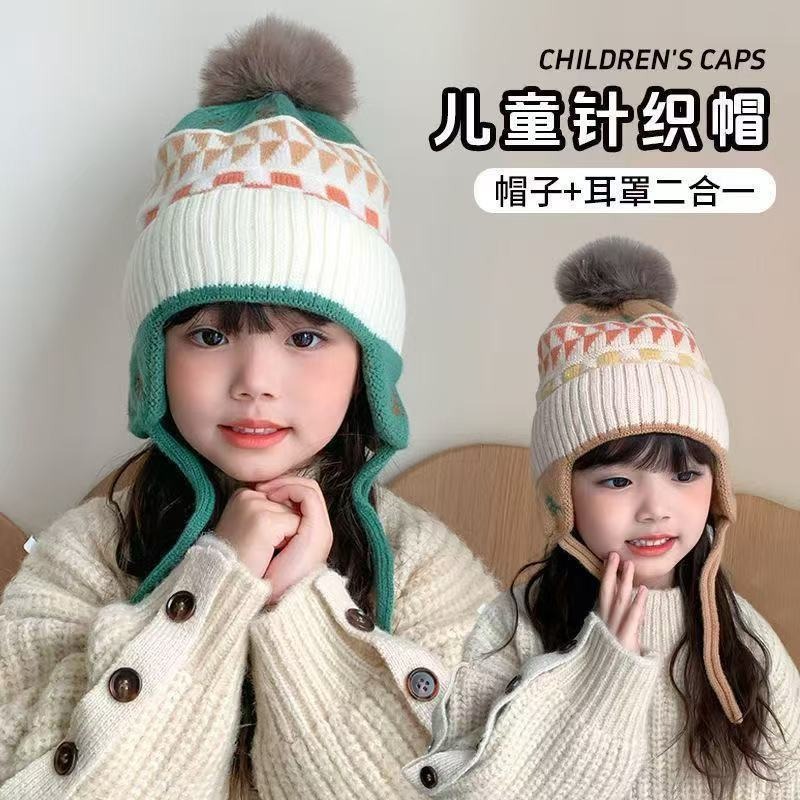 冬季儿童休闲套头帽护耳毛线帽加厚保暖防寒风帽子男女宝宝护耳帽