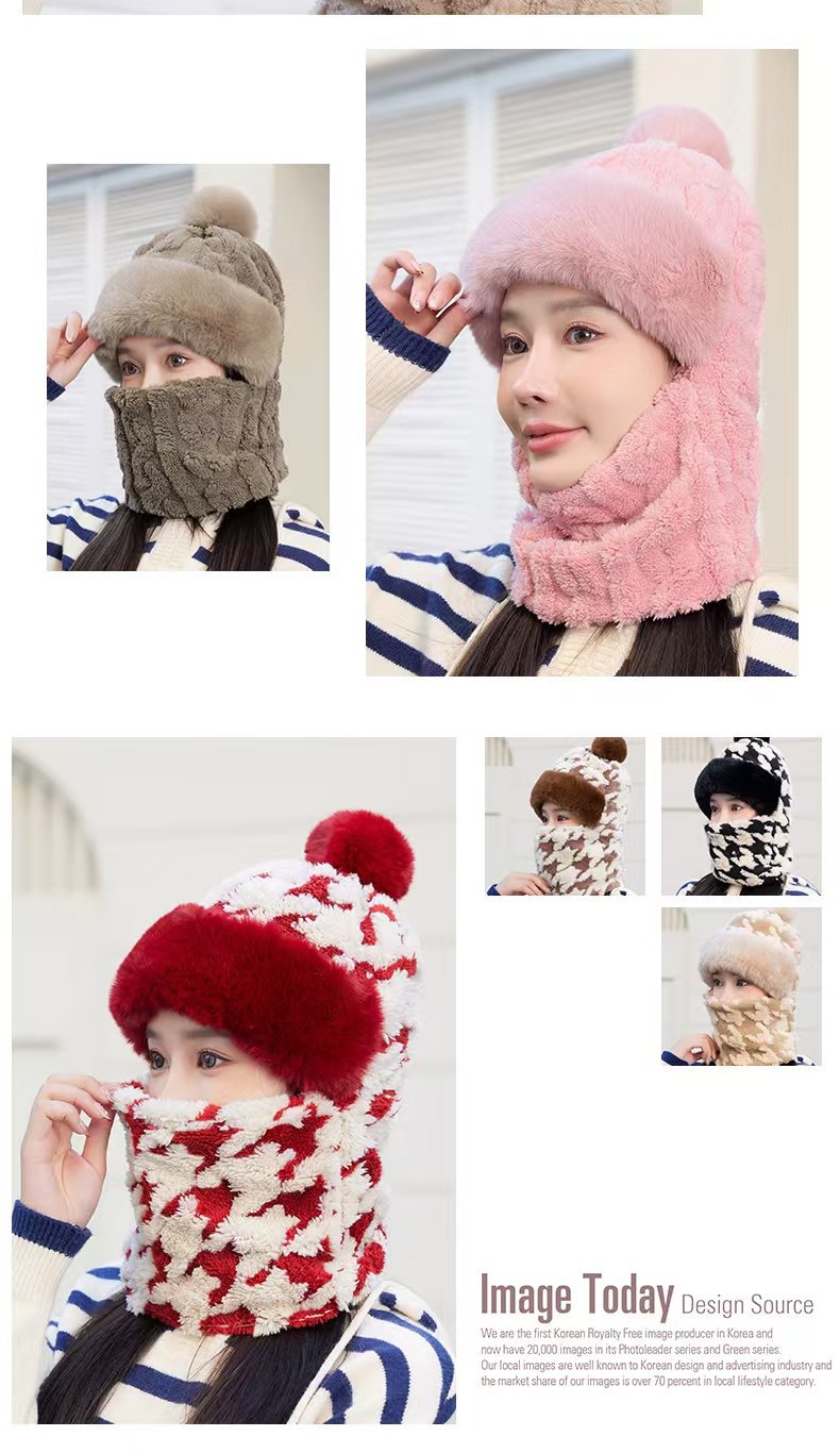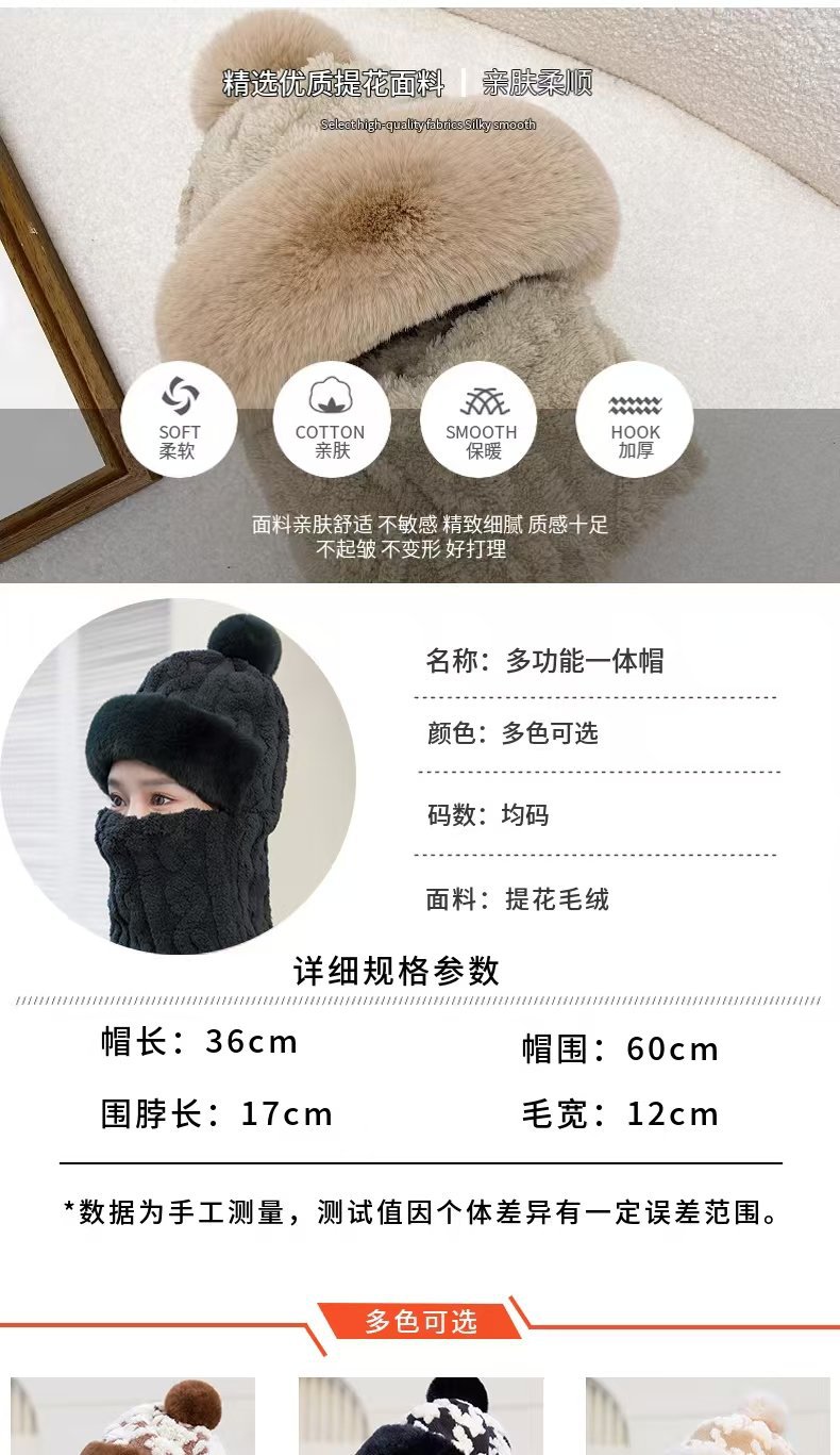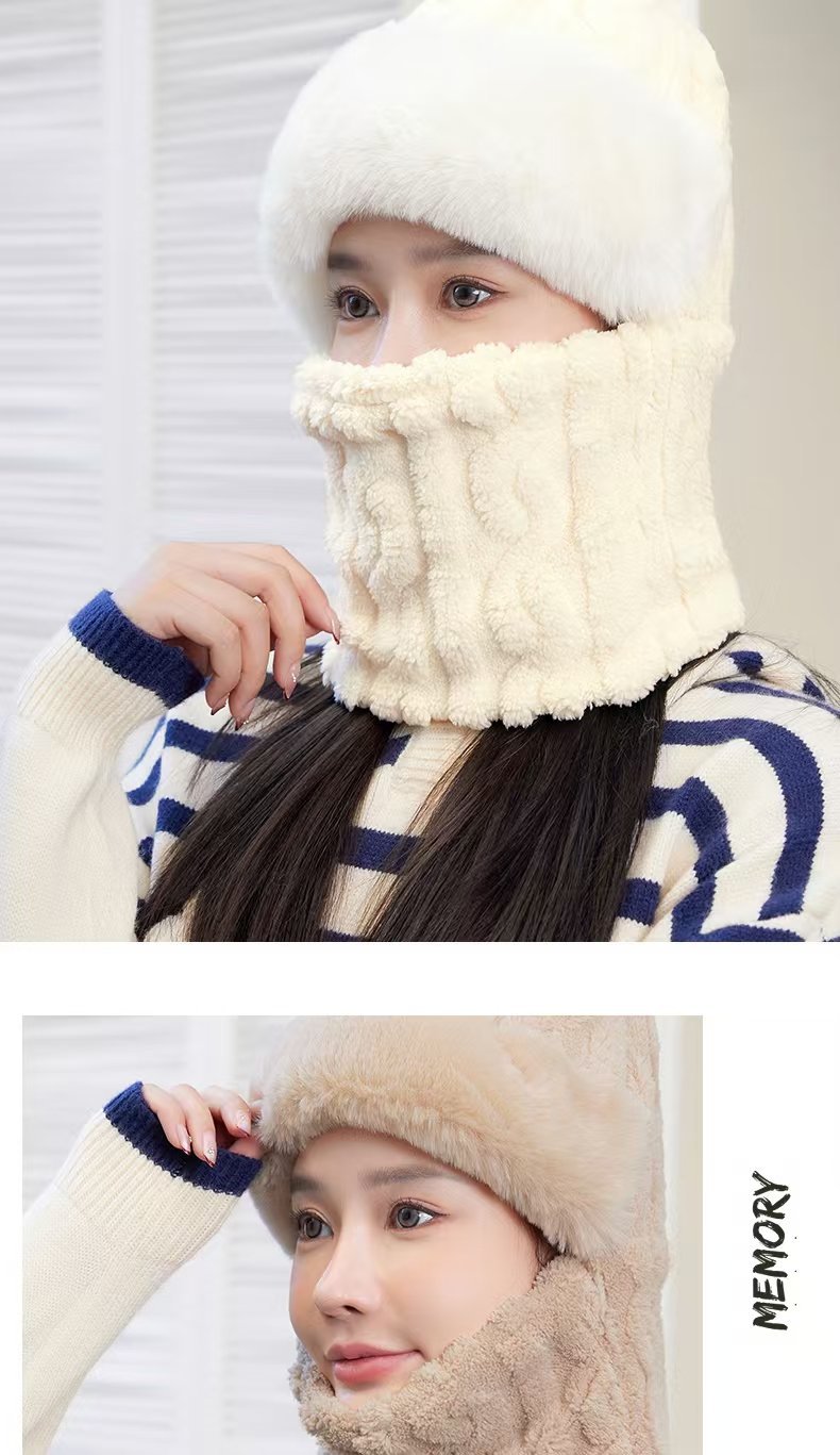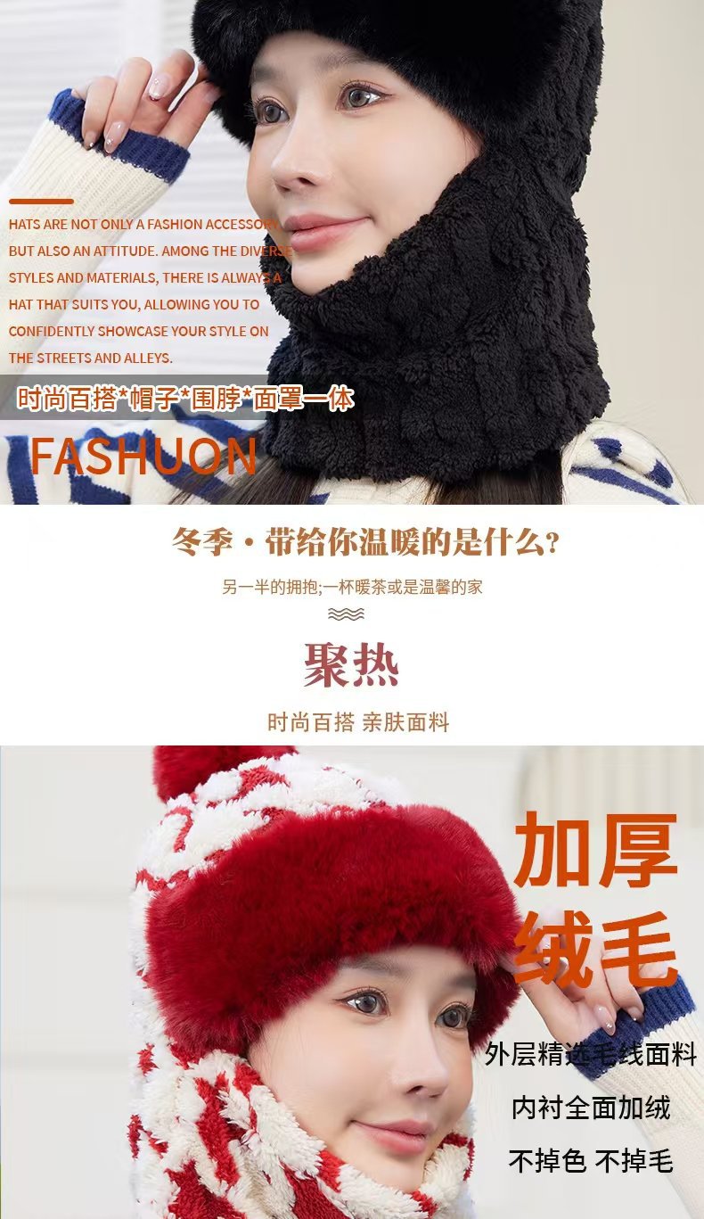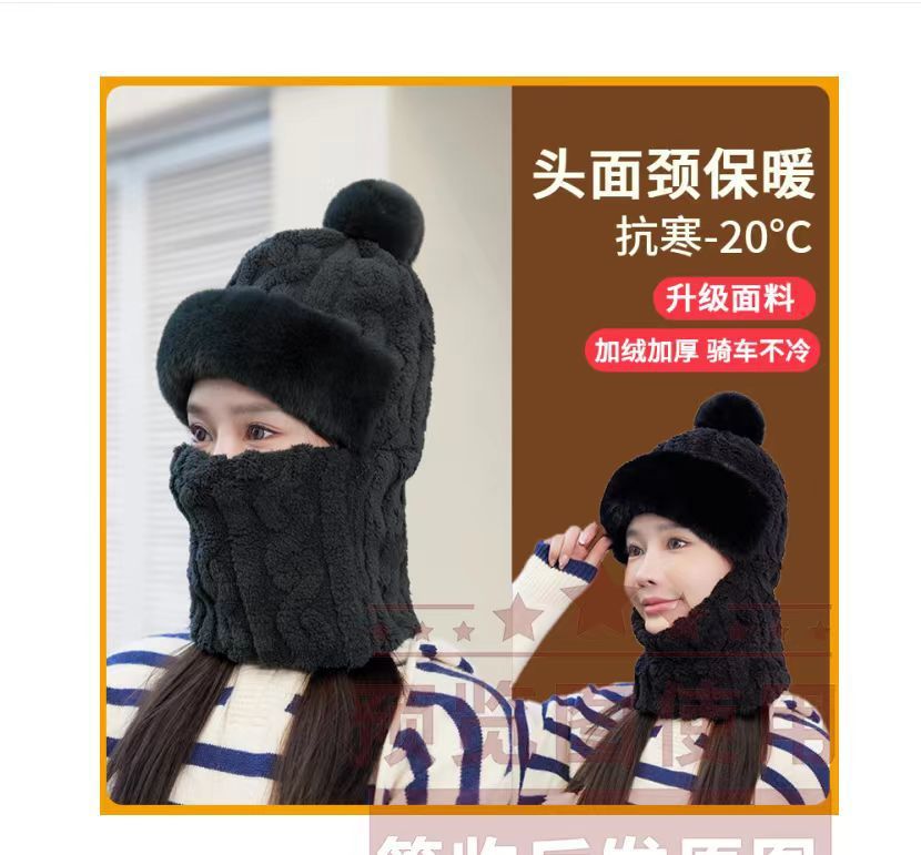 2025冬季防寒骑行护耳防风围脖口罩一体加绒加厚保暖包头套头帽子