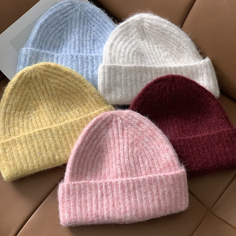 日韩高端新款兔毛针织毛线帽女潮冬冷帽保暖套头针织帽圆顶帽