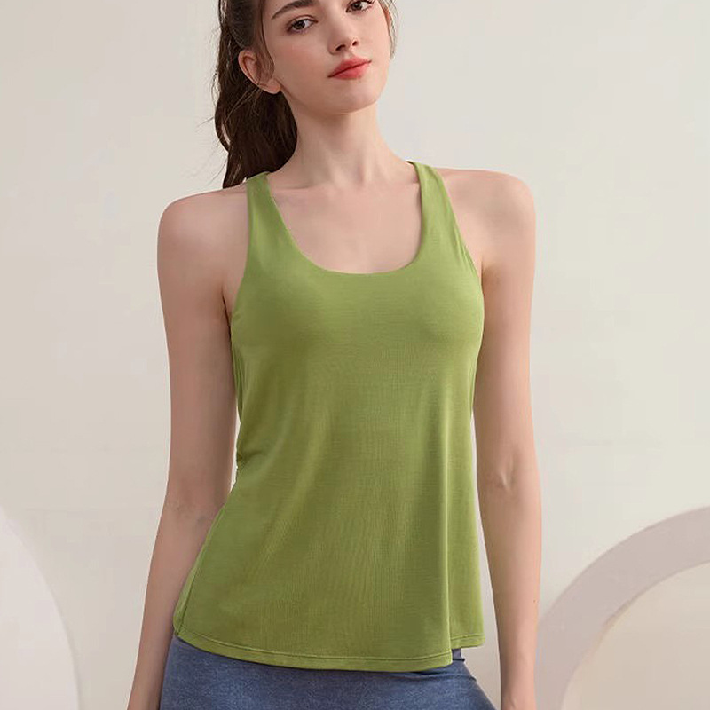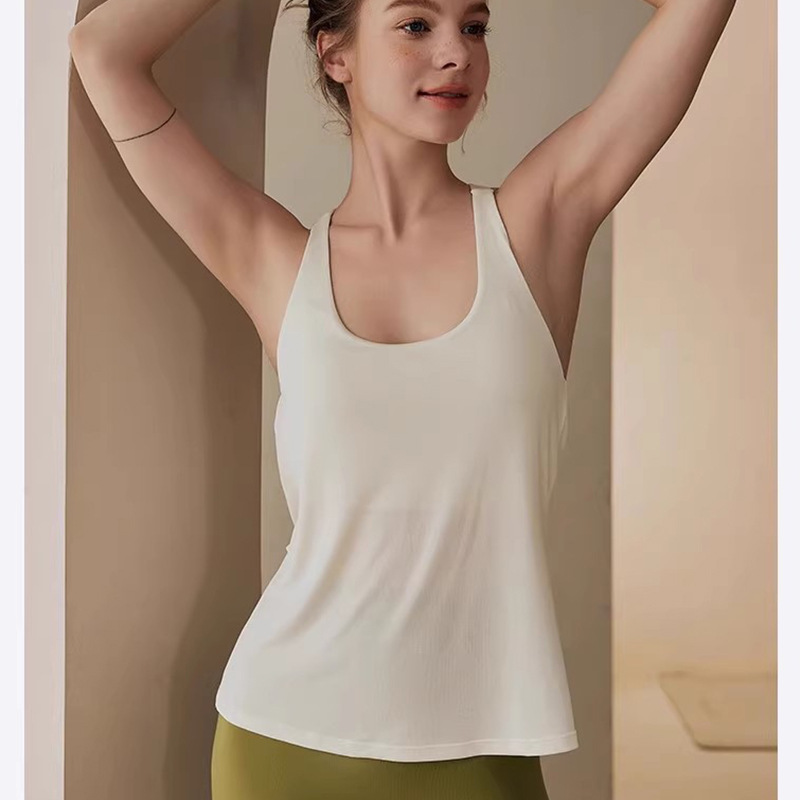 新款含胸垫外穿无袖瑜伽服背心跑步美背运动上衣普拉提健身T恤女