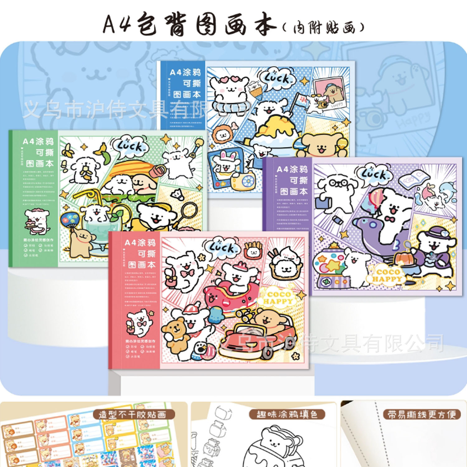 卡通可爱线条小狗绘画本学生带贴纸图画本儿童绘画练字画画本货源