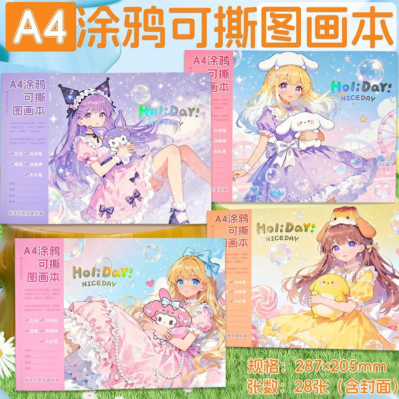 クロミ厚手絵本高颜値小学生A4サイズ絵ノートかわいい持参ステッカー美术本