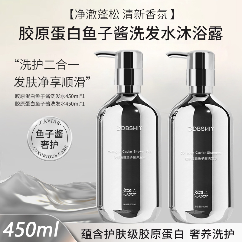 爆款胶原蛋白鱼子酱洗发水去屑止痒控油蓬松柔顺洗发露沐浴露套装