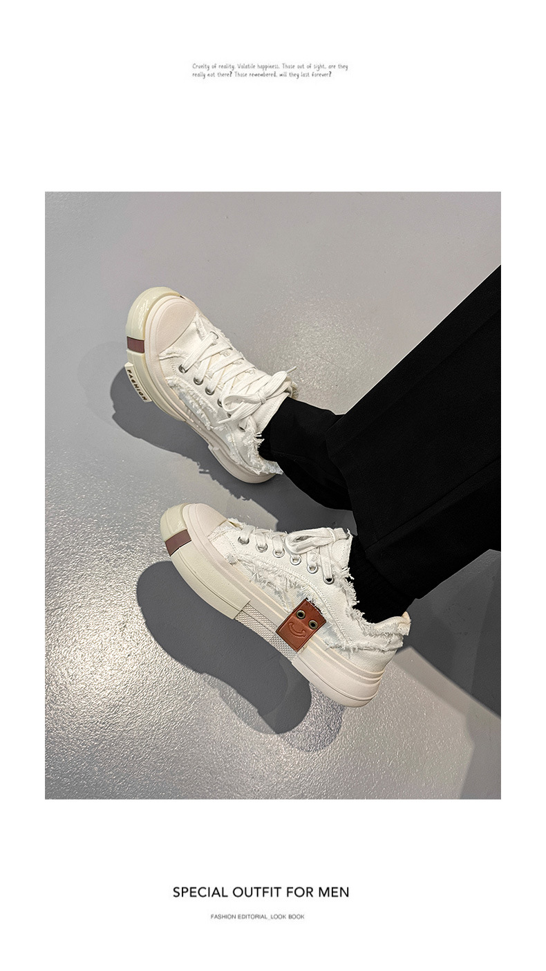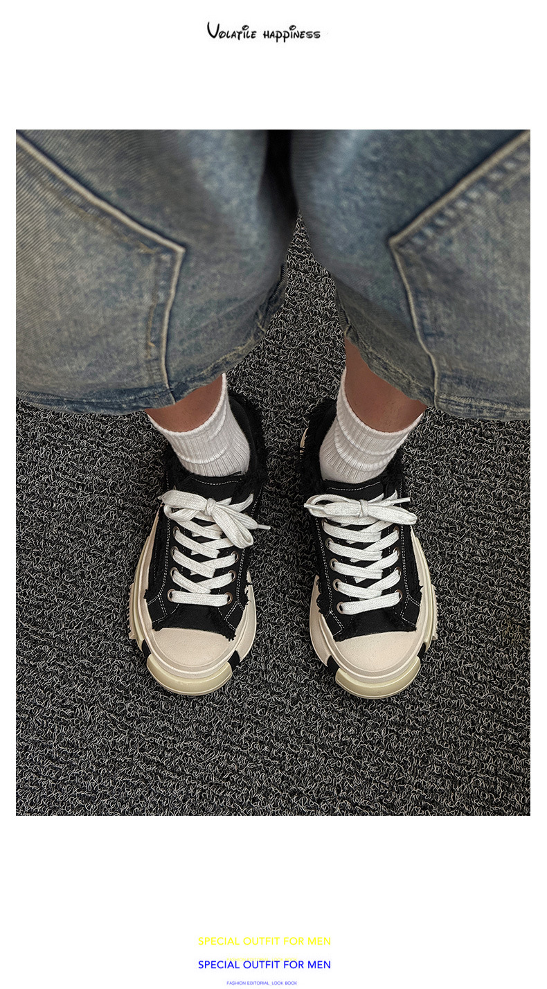 2025 キャンバスシューズ新しいティーンエイジャー厚底メンズトレンディな靴ファッションカジュアル韓国スタイルトレンディな多用途ニッチスニーカー