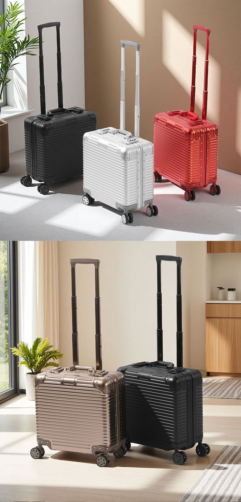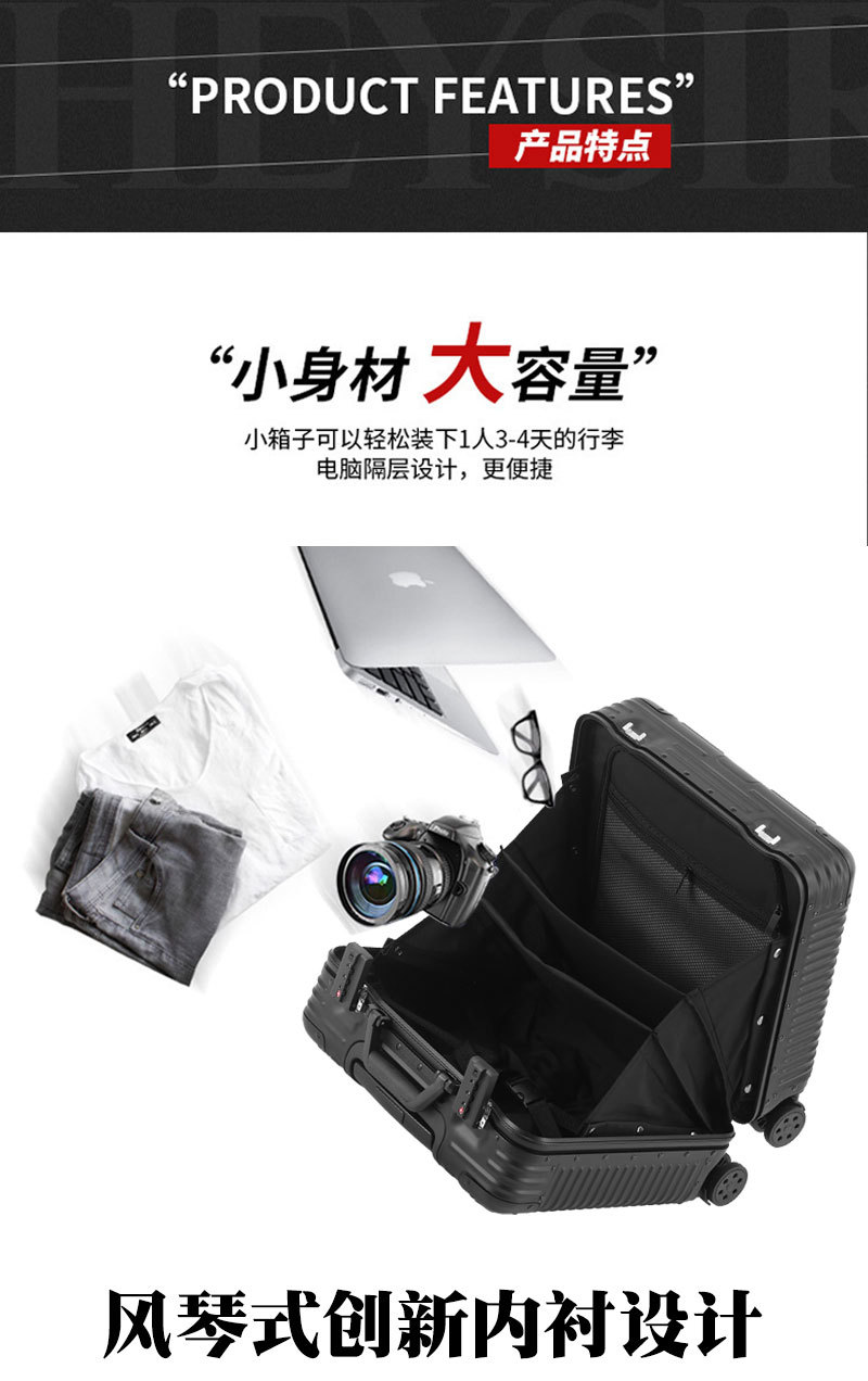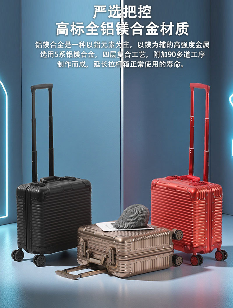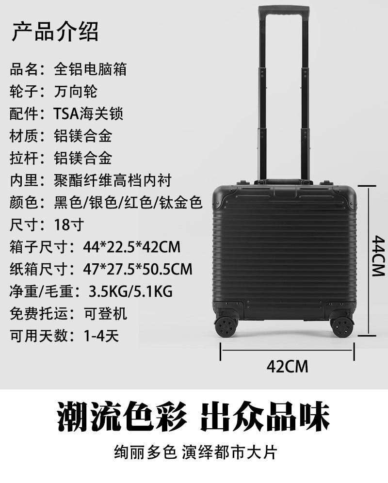 全铝镁合金电脑箱新款商务拉杆箱18寸登机行李箱万向轮机长箱包女