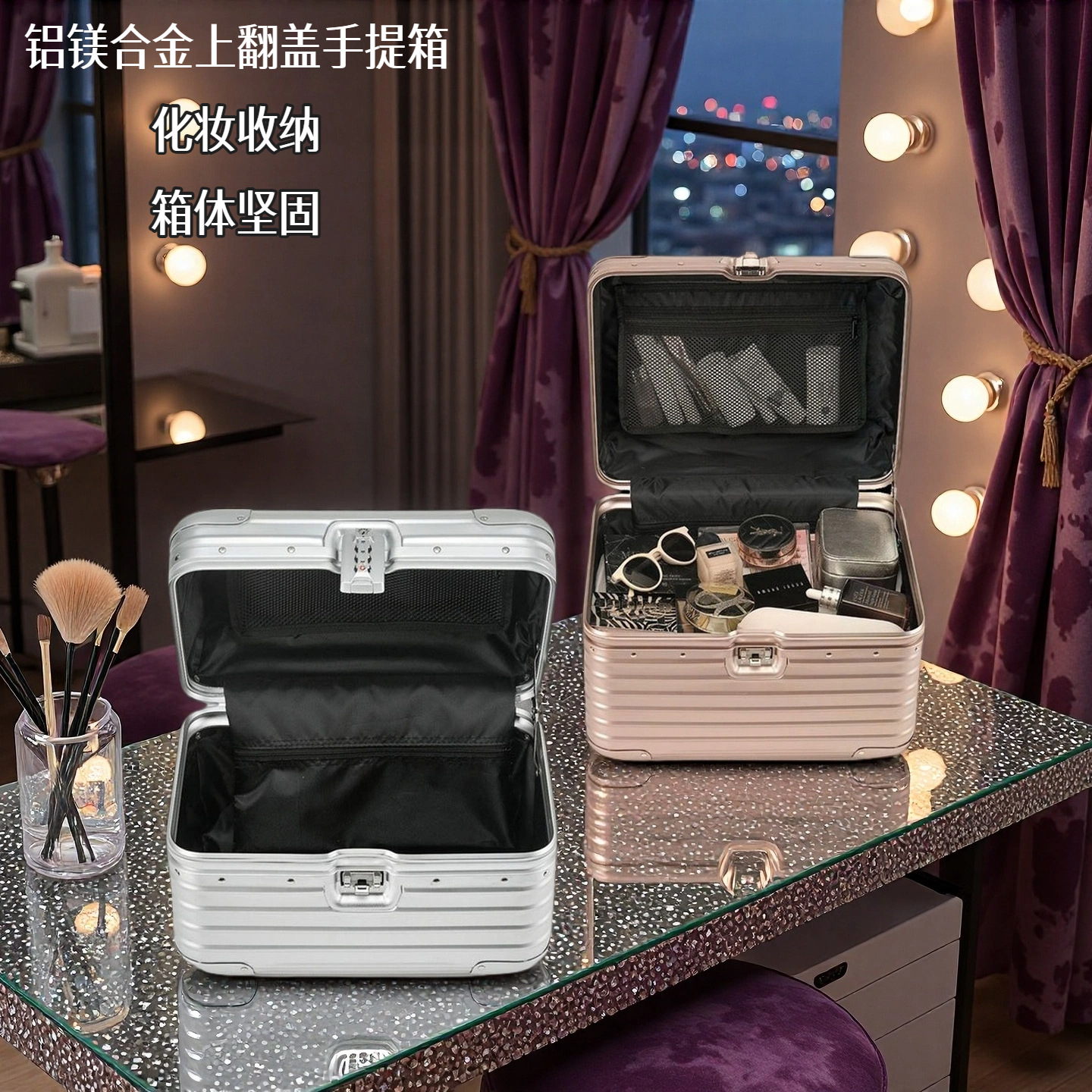 全铝镁合金化妆箱女便携手提箱15寸小型登机箱高端收纳箱定制LOGO