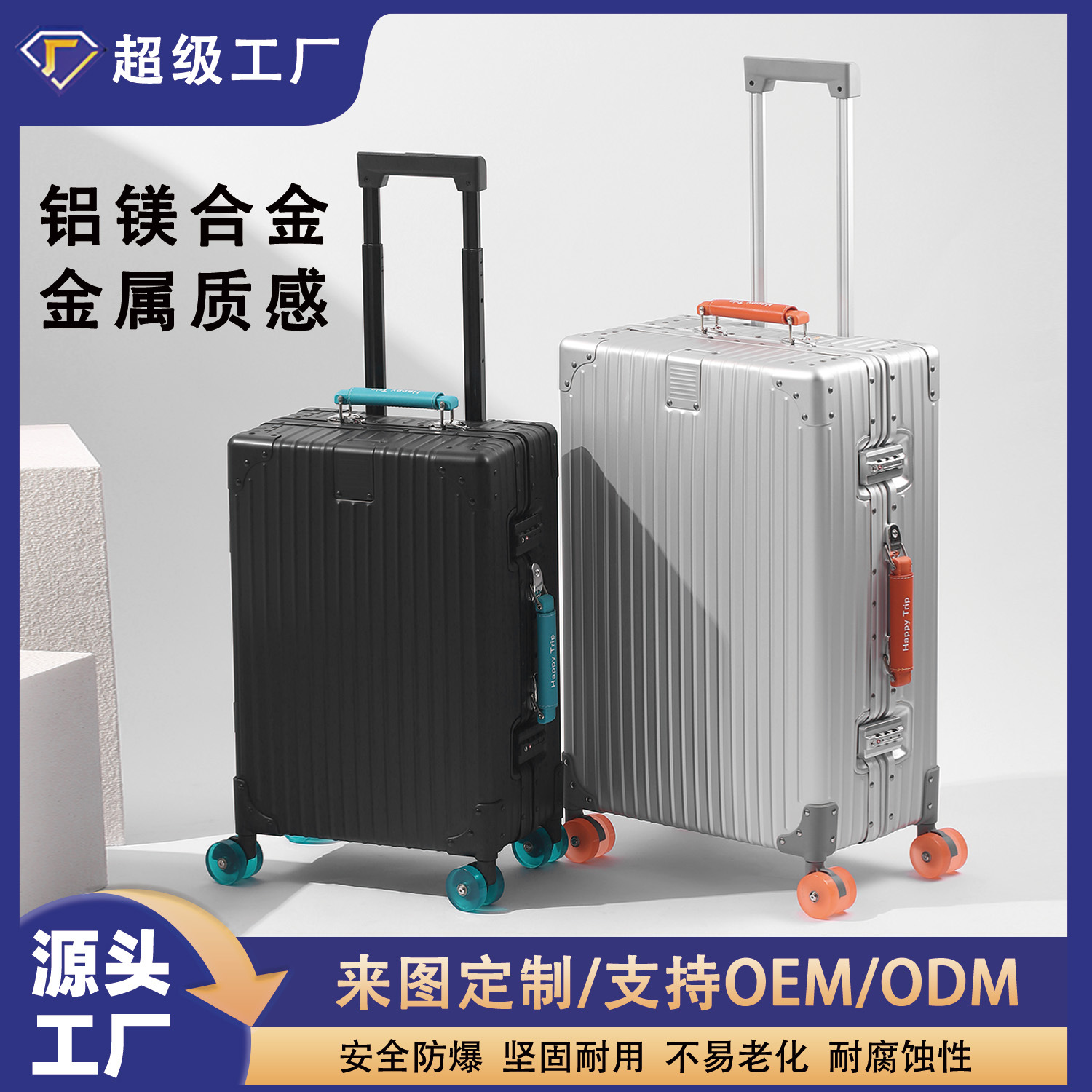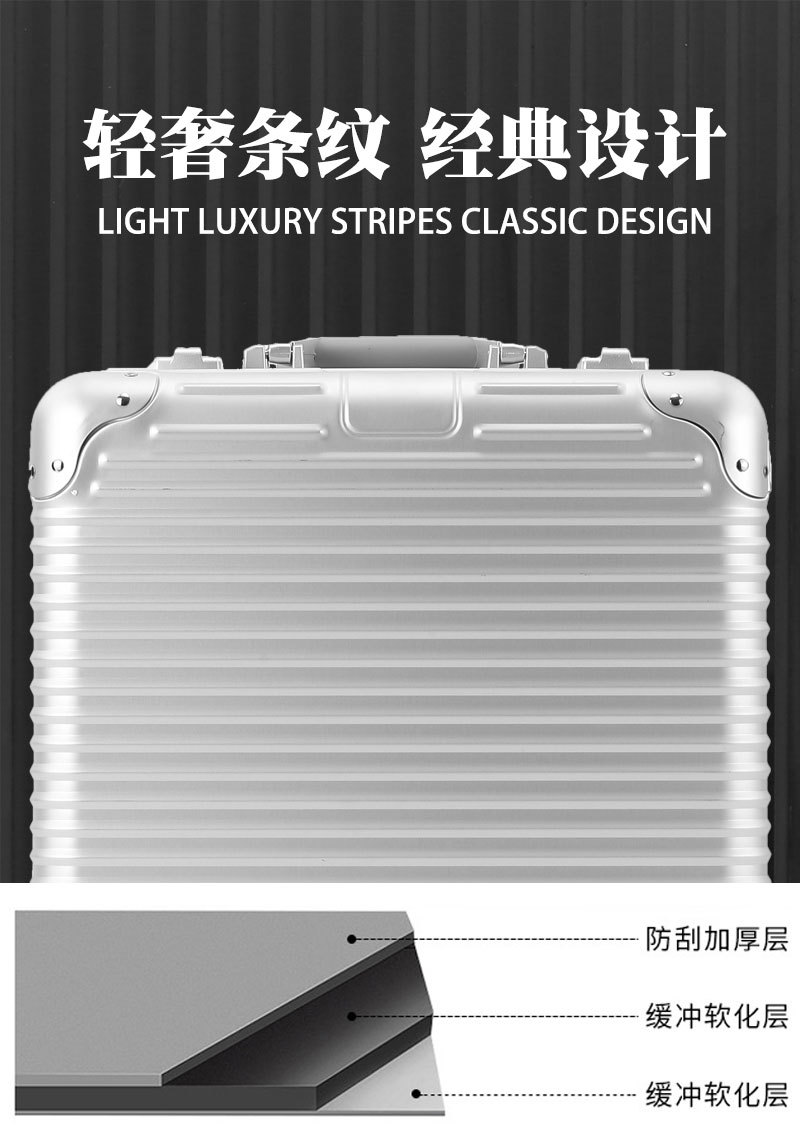 平湖行李箱厂家18寸铝框拉杆箱登机箱旅行密码箱万向轮男女箱包