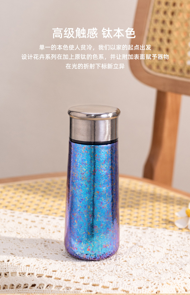 純チタン魔法瓶カップ、ミニ、コンパクト、ポータブルポケットカップ、茶水分離チタンカップ、高価値ポータブル高級ウォーターカップ