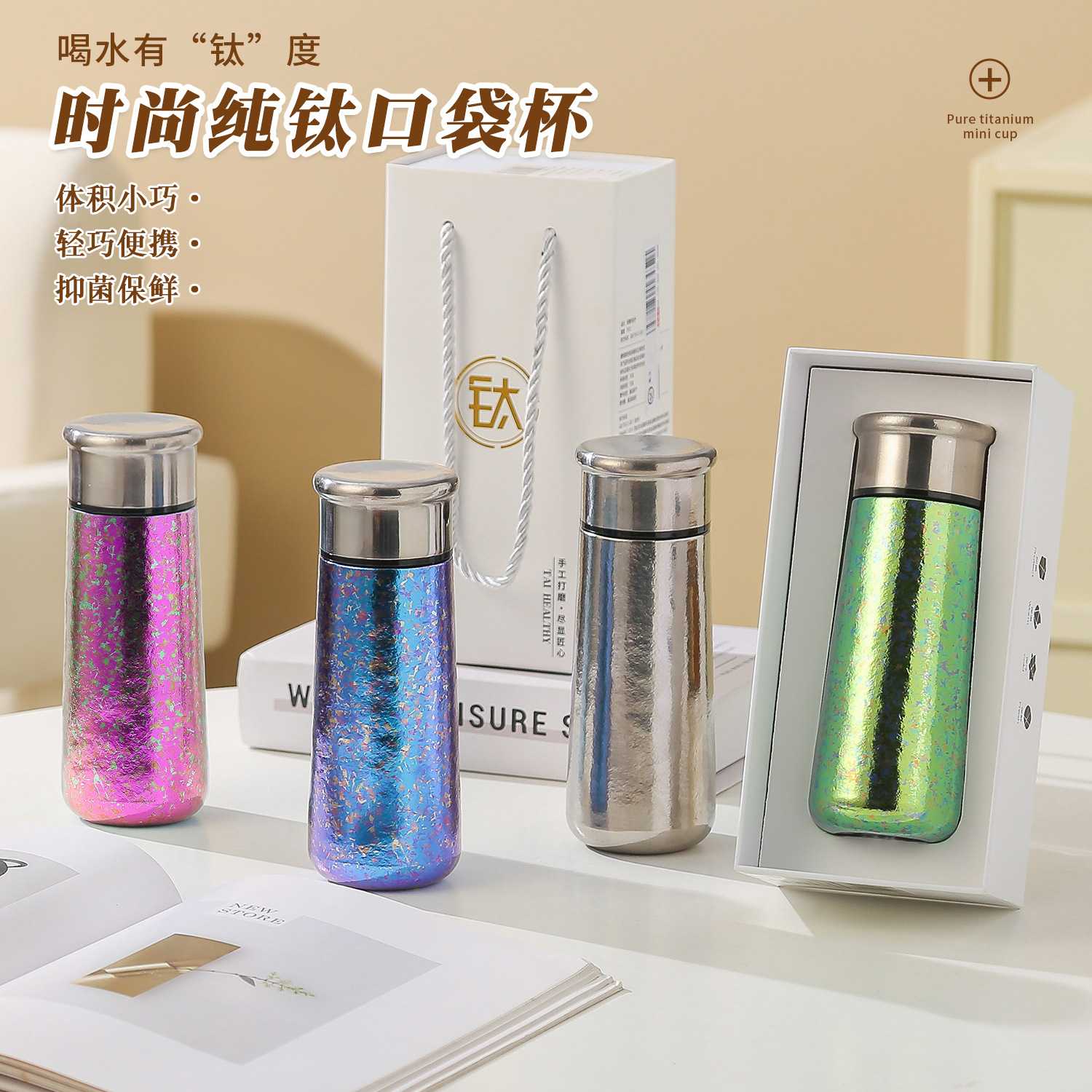 钛杯内外纯钛保温杯迷你口袋杯简约女士水杯伴手礼杯子定制礼盒