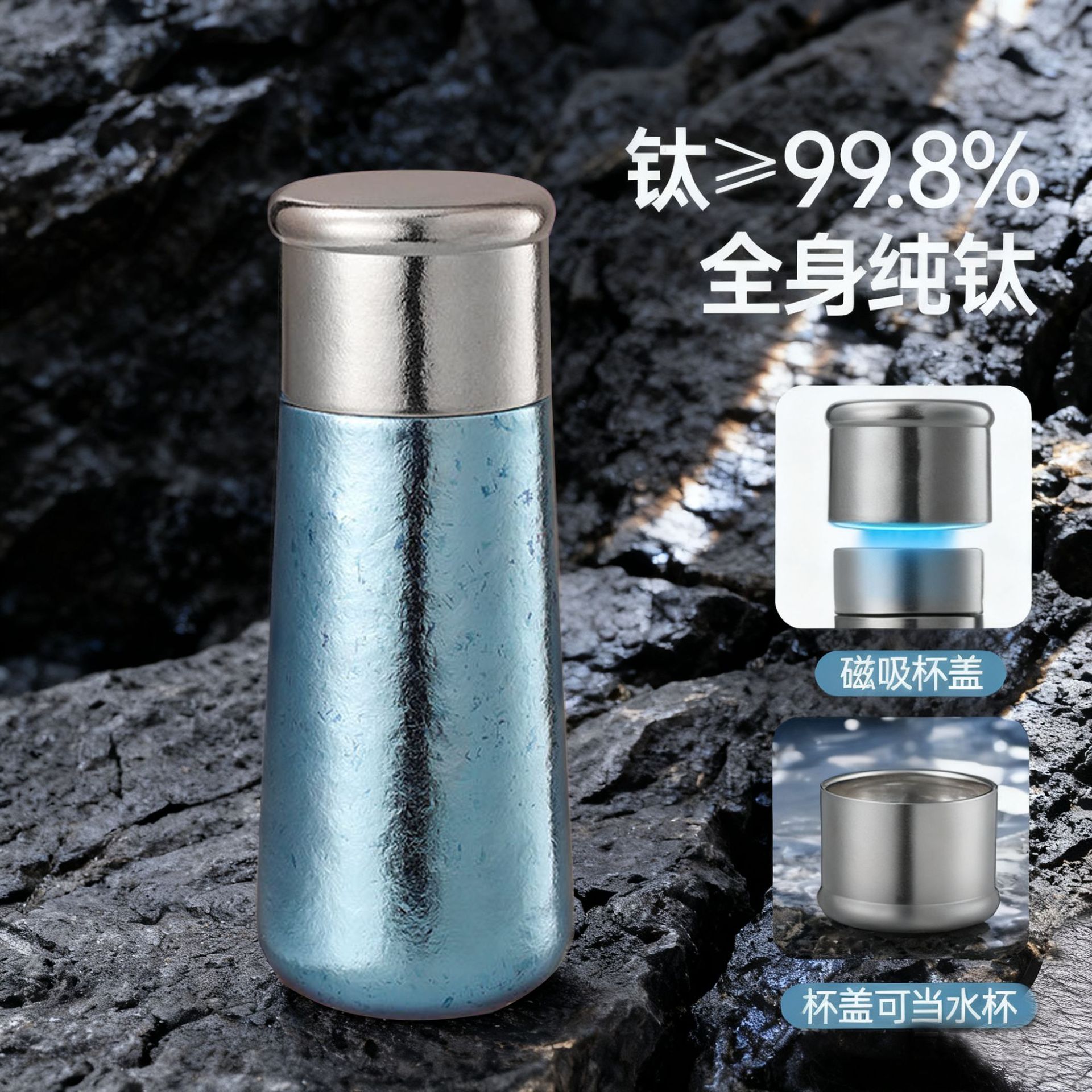 纯钛保温杯高颜值钛杯焖泡保温杯小巧旅行便携双层纯钛磁吸杯批发