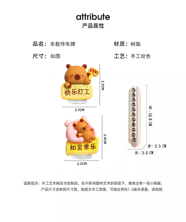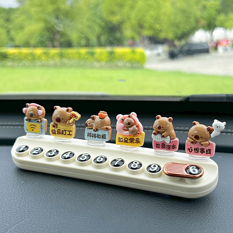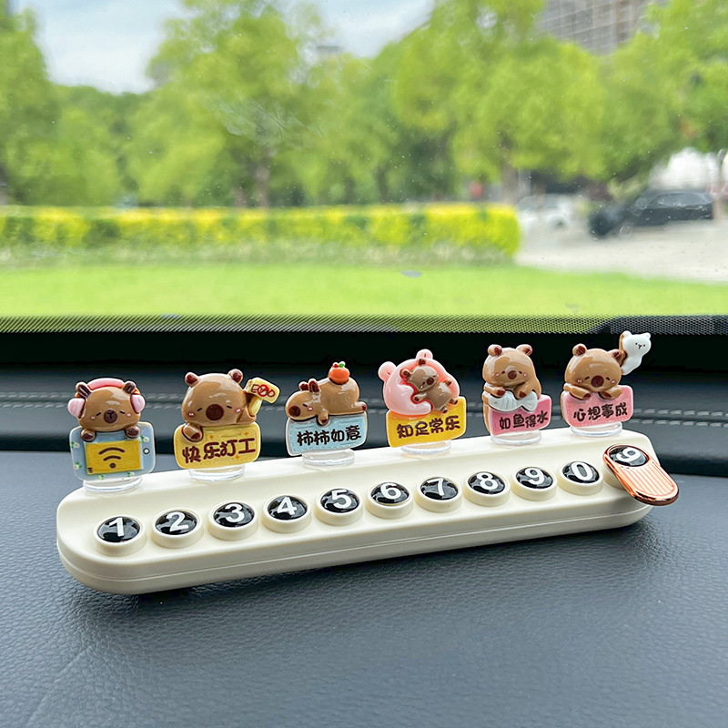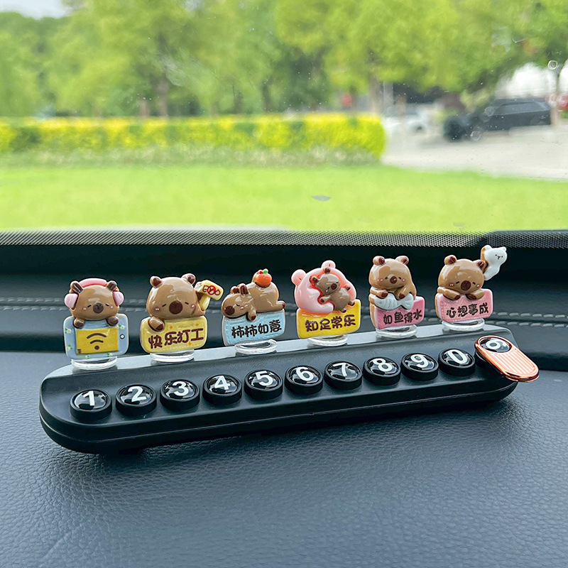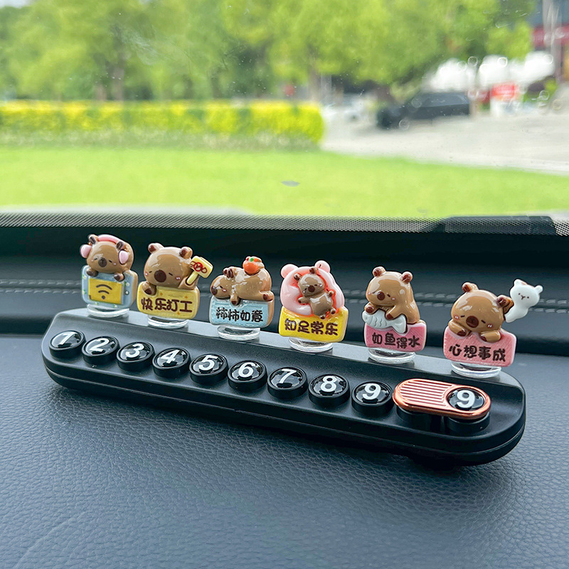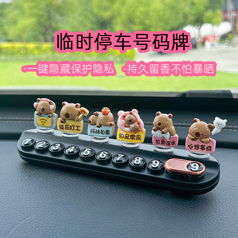 超萌卡皮巴拉临时停车号码牌创意可爱挪车电话牌香薰车内饰品摆件