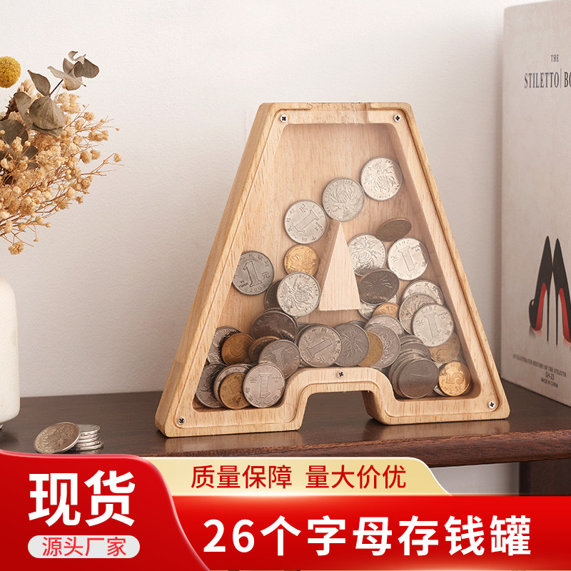 アルファベット貯金箱 木製貯金箱 子供用ギフト 透明貯金箱 木製26文字アルファベット貯金箱