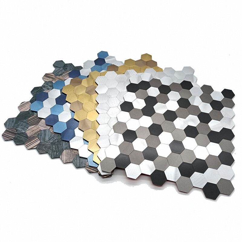 自分で六角の青い立体のステンレスのタイルの壁を貼って台所の高温のかまどの防油を貼って自ら背景の壁にくっつきます。