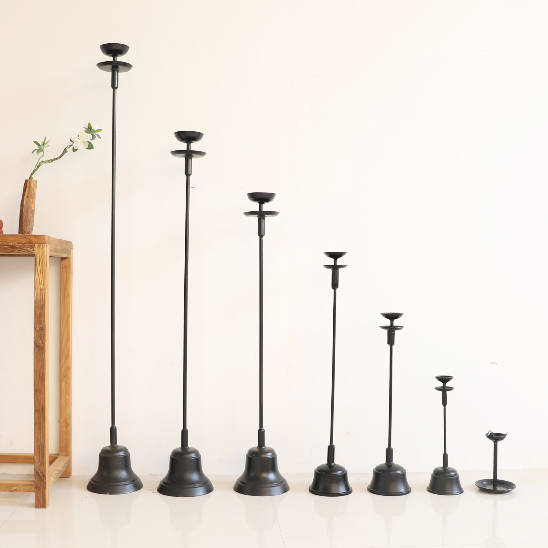レトロな着地の燭台の中国式の禅の意は件の鋳鉄のろうそくの燭台の家庭の暗い風を並べて古風の古い鉄の明かりのランプをまねます。
