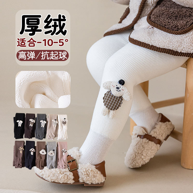 女童打底裤冬季保暖加厚高弹裤子可爱卡通婴童连裤袜棉质粗条裤袜