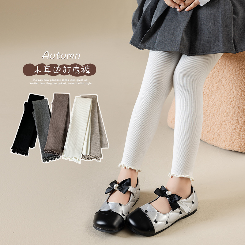 春秋用既製品綿キャンディーカラー無地レギンス、秋用フリル付き9分丈パンツ、女の子用レギンス・タイツ