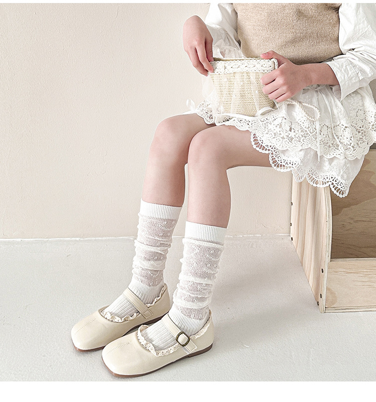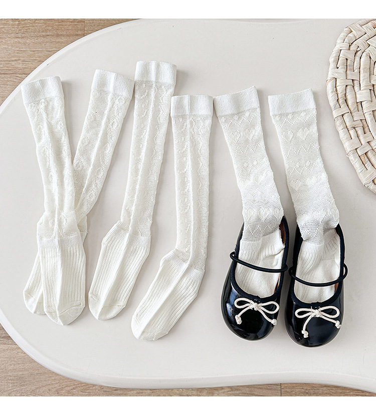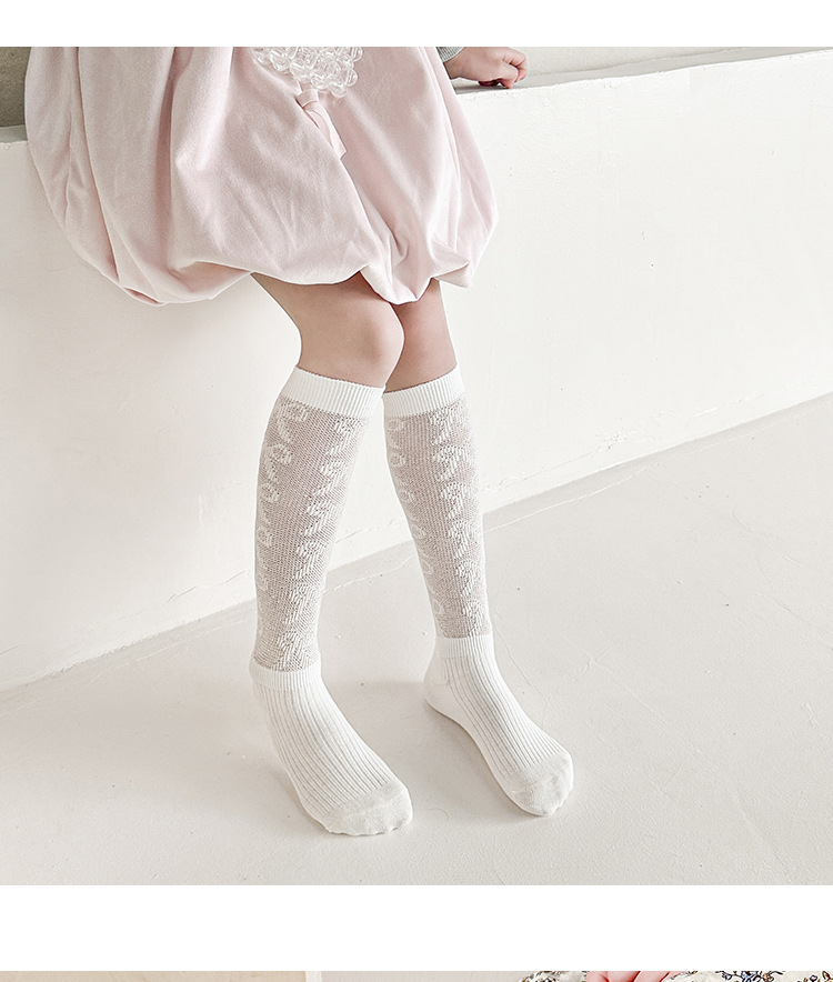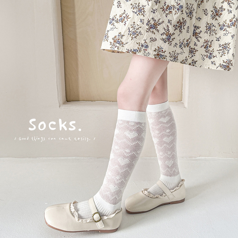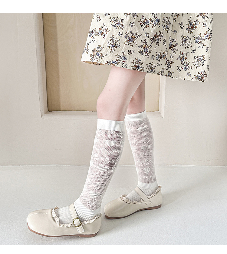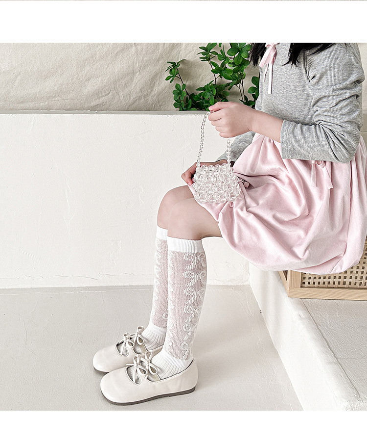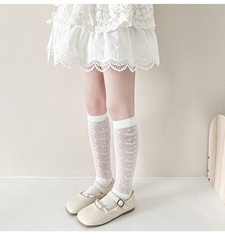 25年新作子供用ロングメッシュニーソックス、女の子用ハイチューブ中空二本針ブティック日本製ミッドチューブソックス卸売