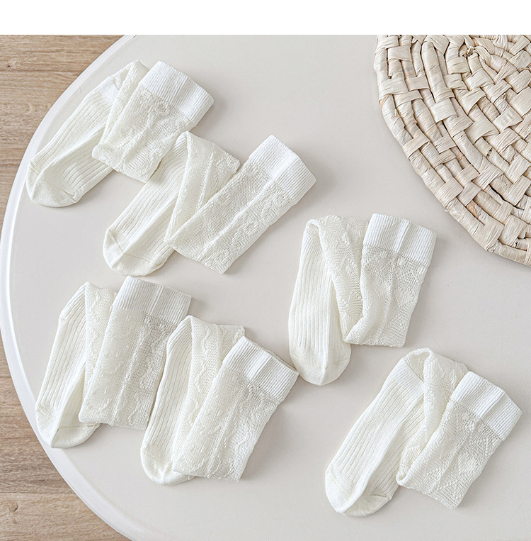 春と秋の薄い子供のレギンスの麻の模様の赤ちゃんの靴下の白い足のダンスの靴下の子供の保温のタイツ