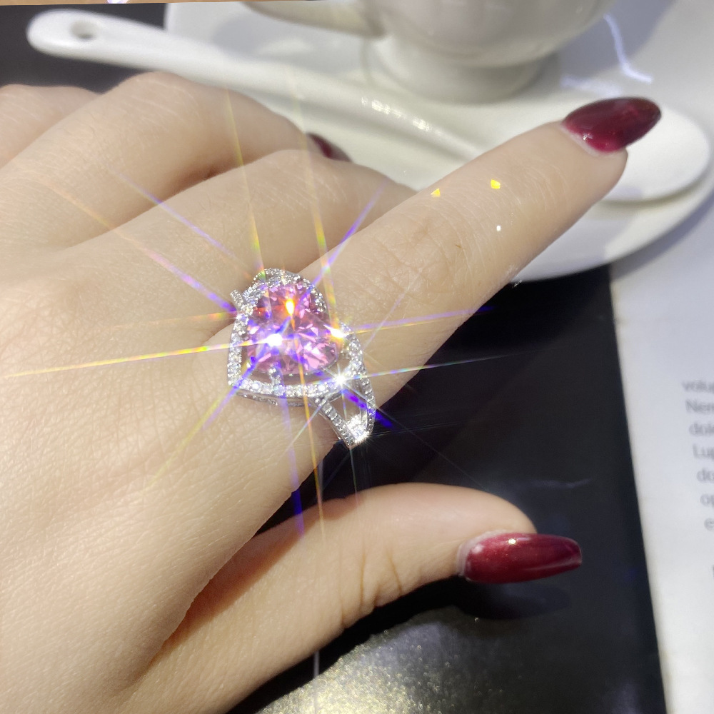 ホットセール中!2カラットのハートアンドアローダイヤモンド、高炭素ダイヤモンド、マイクロセッティング、ピンクとホワイトのツートンカラー、フルダイヤモンドジルコニアリング、サイズ調整可能