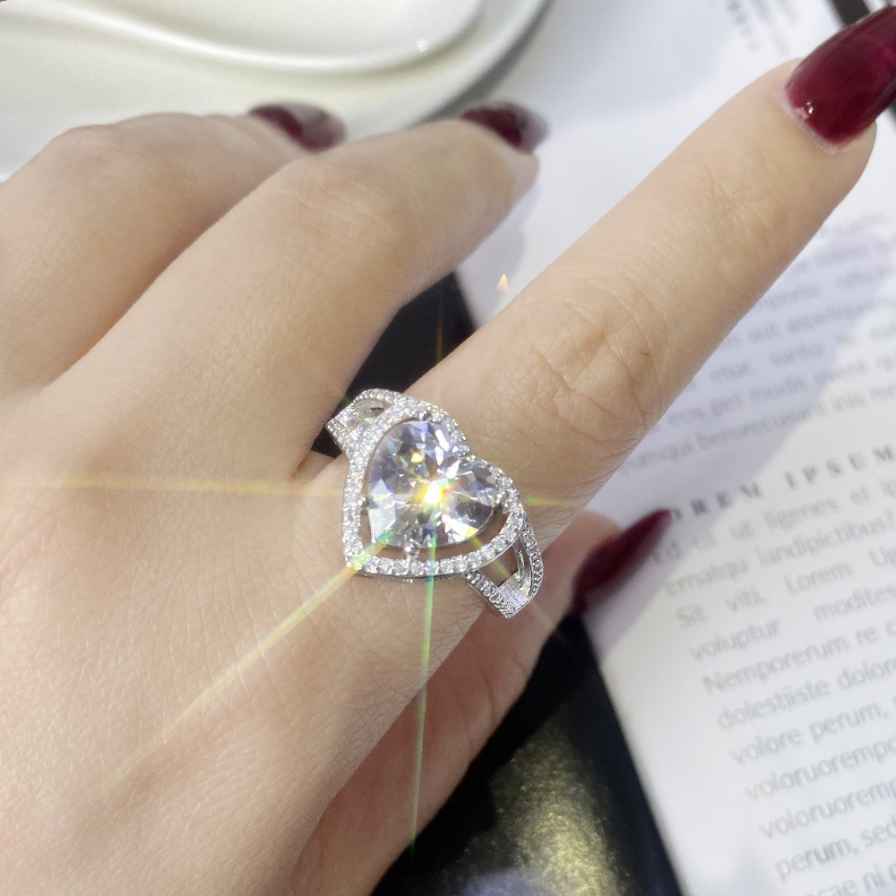 Douyin Kuaishou ライブクラシックラウンドスクエアバッグ 1 カラットハートと矢ジルコン模造モアッサナイトオープンリング女性用