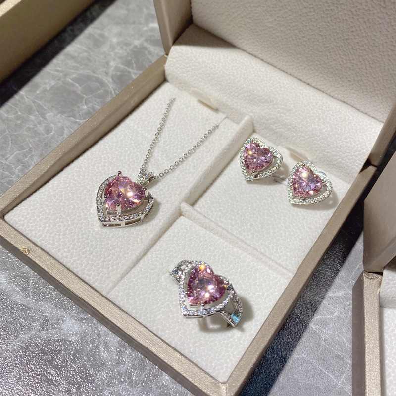 生放送人気のヨーロッパとアメリカの新しい高級カラージェムセットローズピンクトパーズモアッサナイトダイヤモンドリングイヤリングネックレス