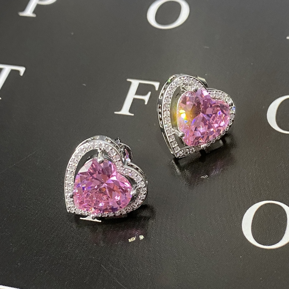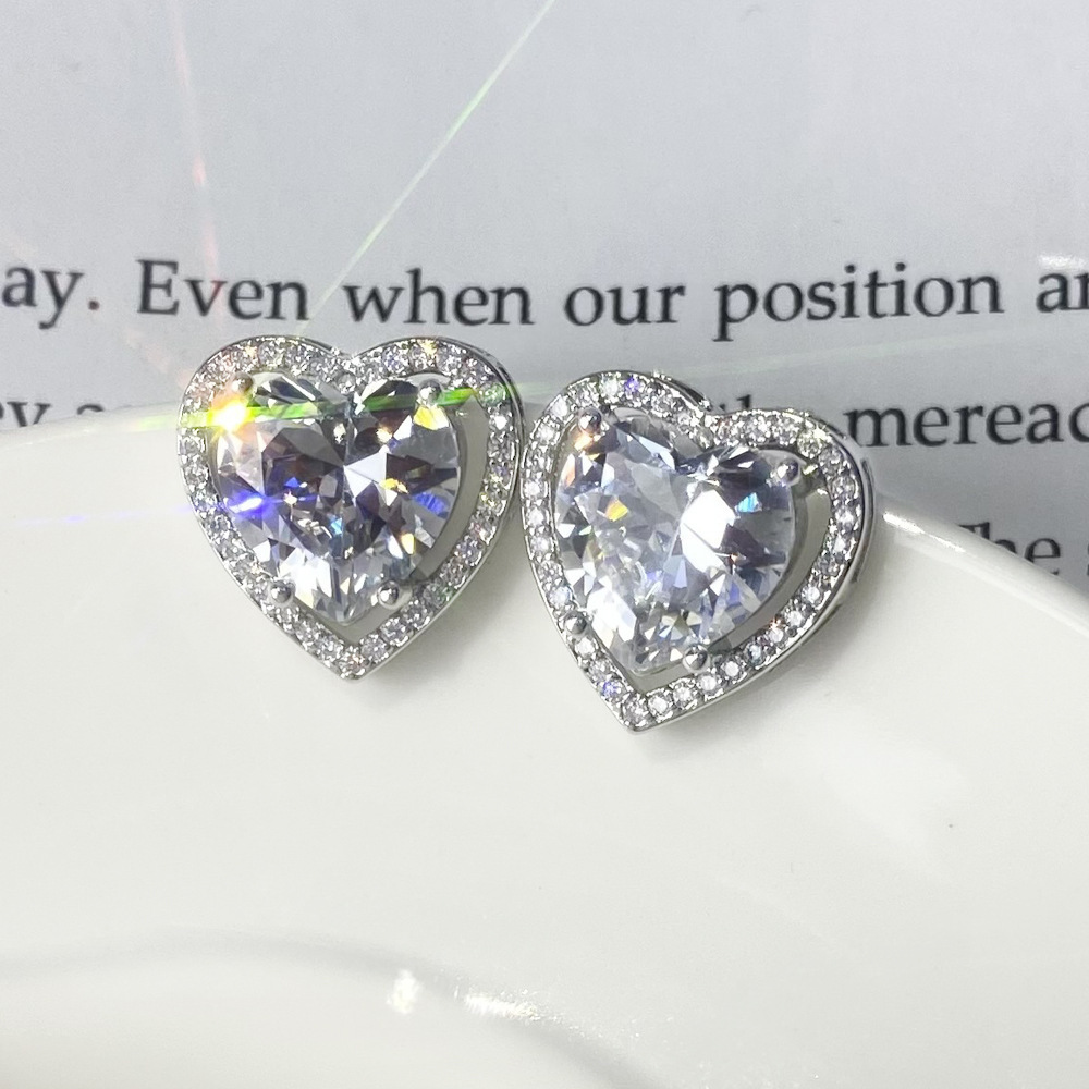 ライブで人気の高い模造モアサナイトイヤリング、女性用S925純銀針ジルコンハート型イヤリング、ラウンドイヤリング、越境卸売