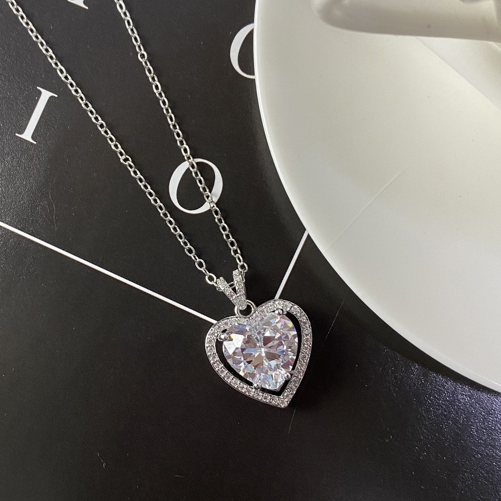ライブブロードキャスト 2 カラット模造モアッサナイトネックレス女性用 pt950 ホワイトゴールドメッキ鎖骨チェーンハートと矢ジルコンペンダントジュエリー
