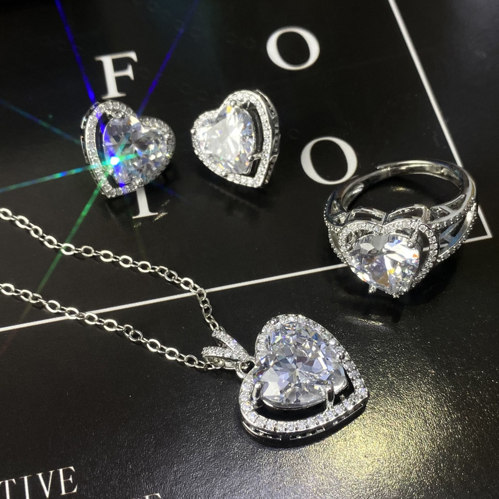 Amazon 外国貿易ヨーロッパとアメリカのライト高級高貴な質感の宝石ジルコンネックレスセットリングイヤリングペンダントネックレス女性用
