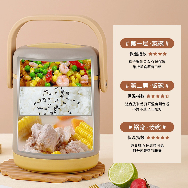 見た目も似ています 304 ステンレス鋼弁当箱大容量真空断熱ポット三層多層学生弁当箱断熱バケツ卸売,304 ステンレス鋼の大容量断熱ランチボックス密封された真空断熱バケツ学生や会社員のためのポータブル米バケツ 3 層