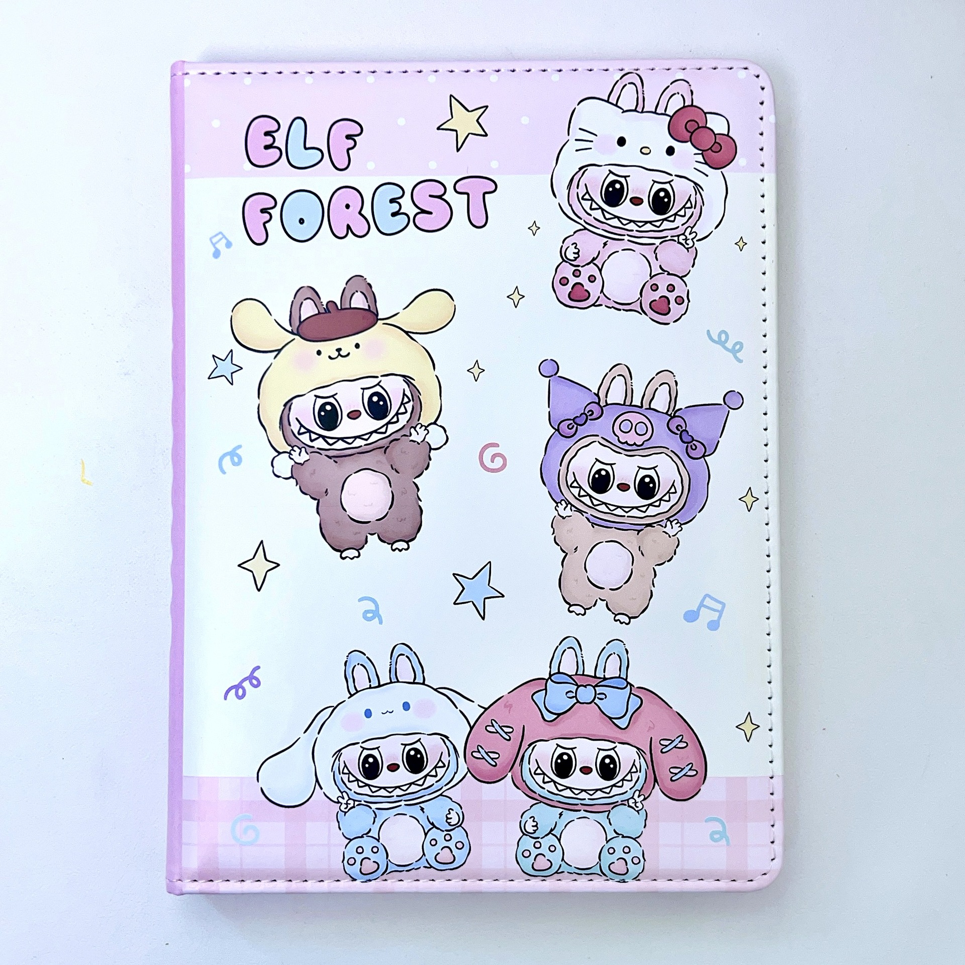 新しい落書き風ラブブA5カラーページハードカバーノートブック、かわいい漫画風手帳、学生用メモ帳ラブブ
