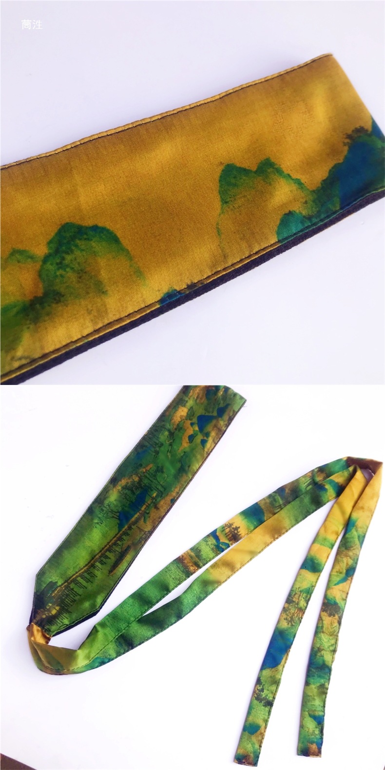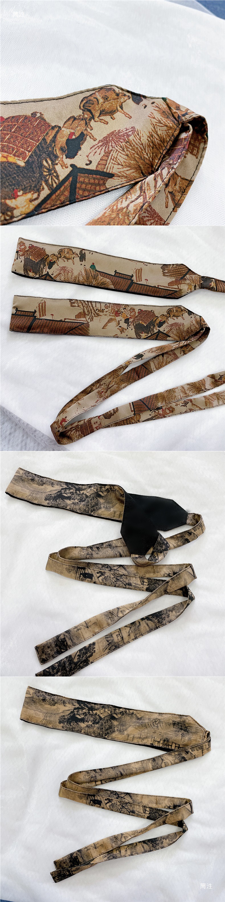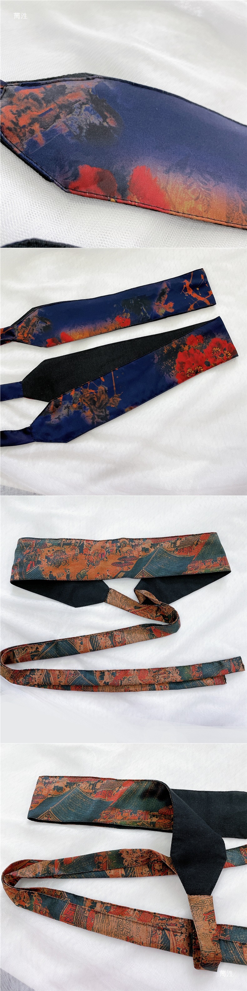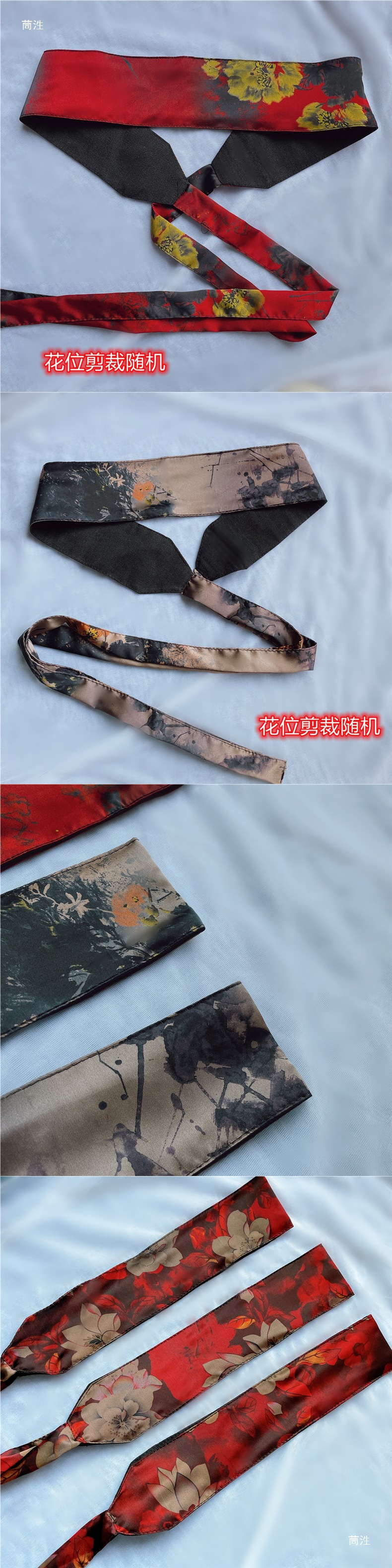 レトロサテン香り雲糸プリントエスニック装飾ドレス新中国風スリムワイドベルトガードル女性