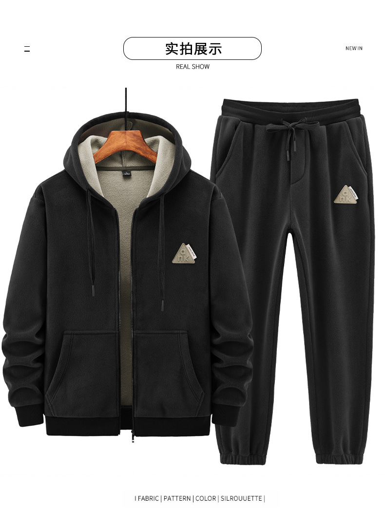 2025摇粒绒冬季新款加绒套装男羊羔绒卫衣休闲套装加厚保暖两件