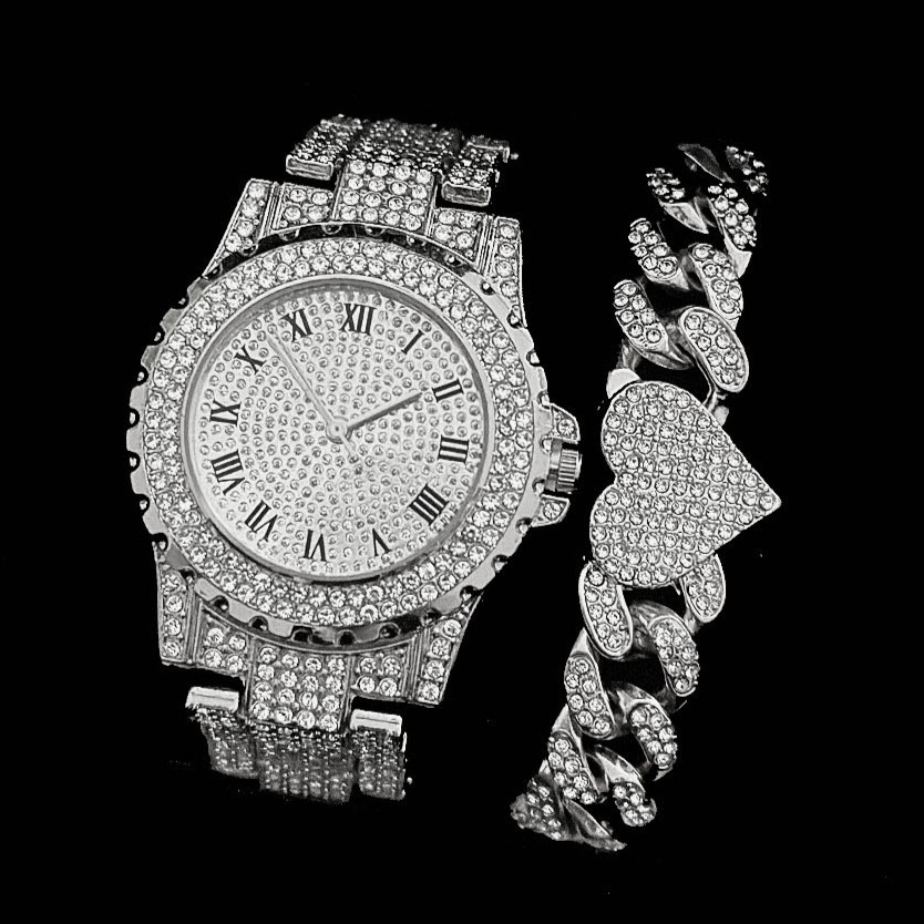 欧米で人気の卸売シルバーアクセサリー、フルダイヤモンドチェーンネックレス、ローマダイヤモンドウォッチ、菱形キューバチェーン、クロス