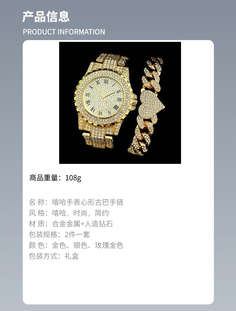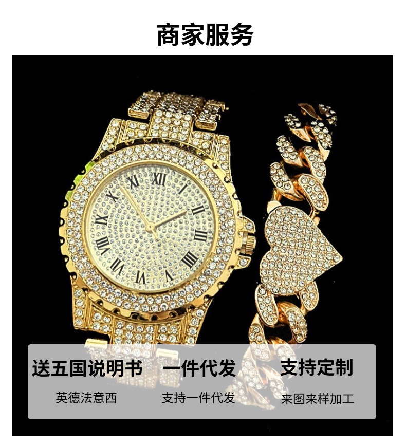 クロスボーダー人気ヒップホップダイヤモンドクォーツメンズウォッチキューバブレスレットネックレスペンダントクロス5点セット