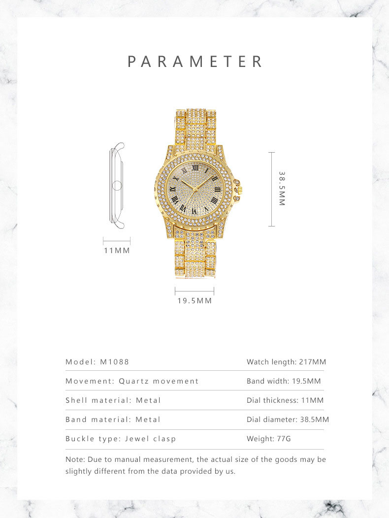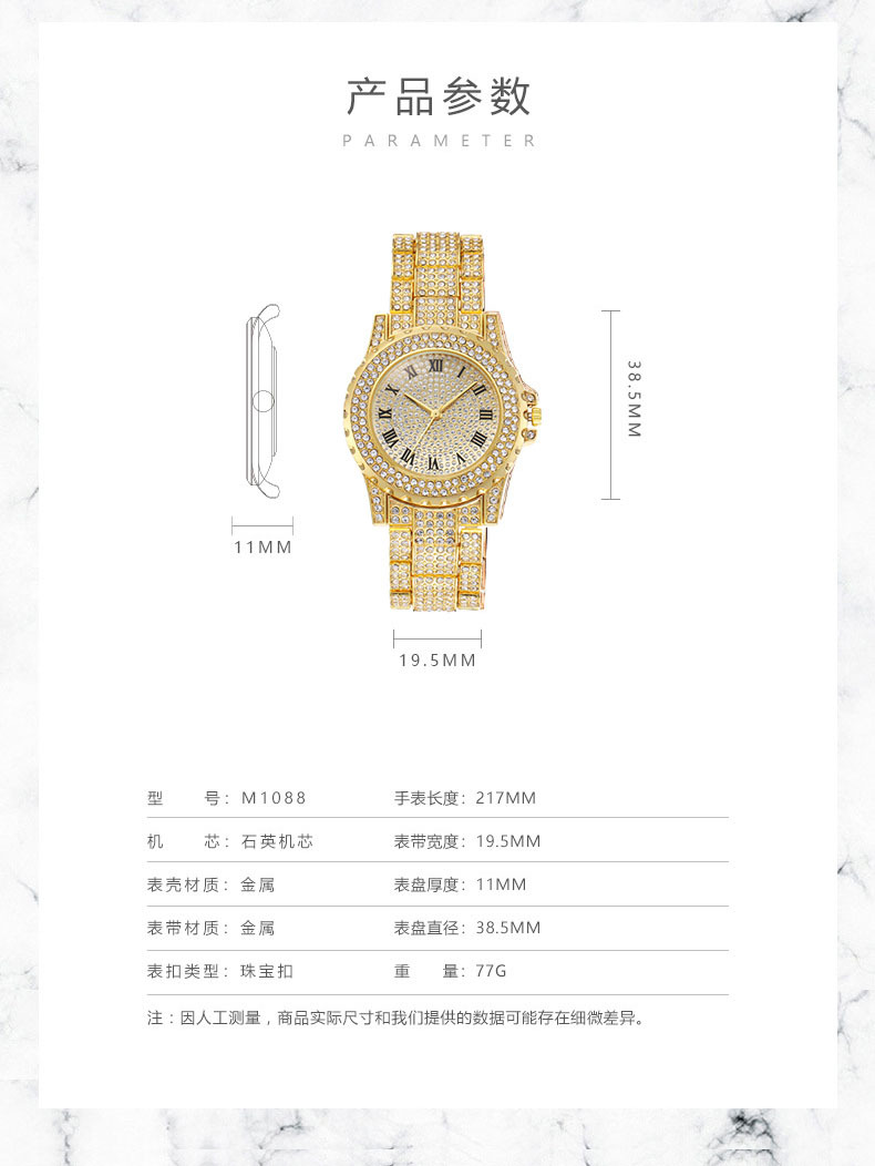 外国貿易輸出人気のファッションダイヤモンドローマパターンフルダイヤモンドレディースウォッチレディースウォッチクォーツウォッチラインストーンレディースウォッチ