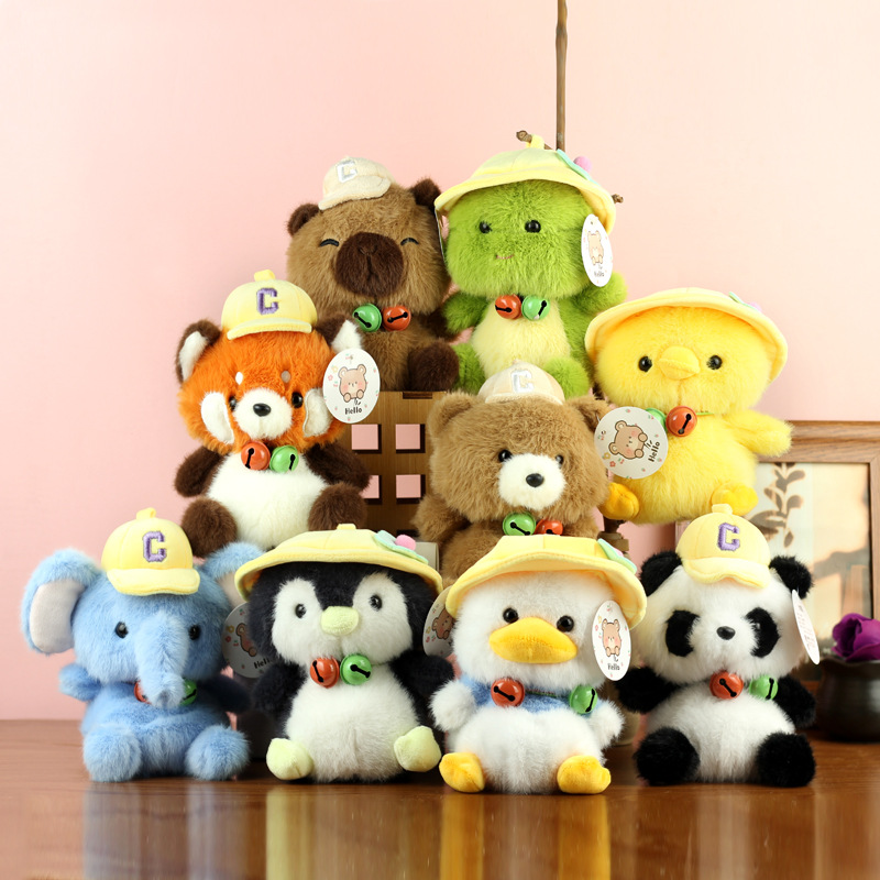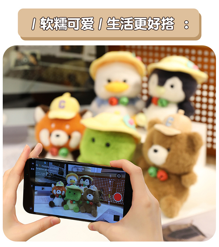 可爱铃铛桌伴熊猫公仔掌中宝系列企鹅毛绒玩具小恐龙玩偶陪伴摆件