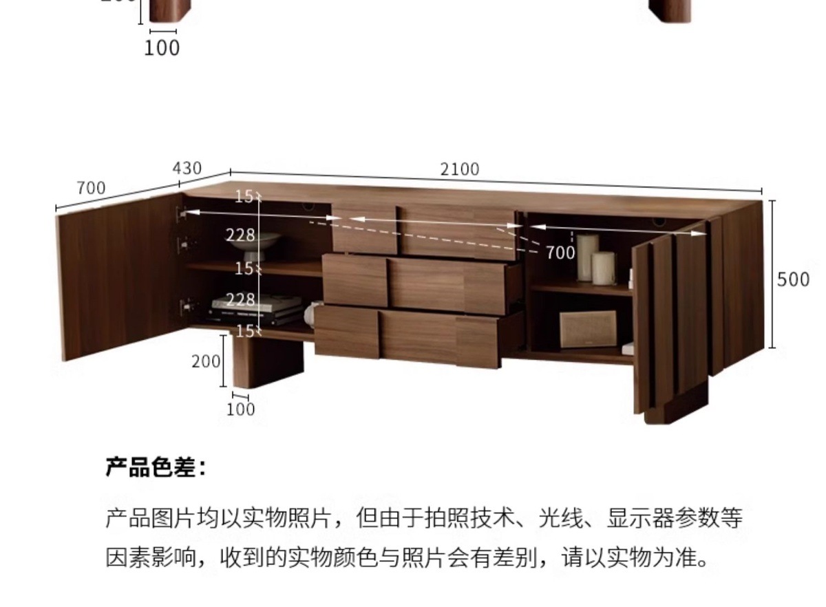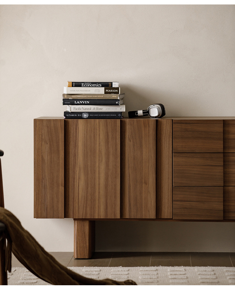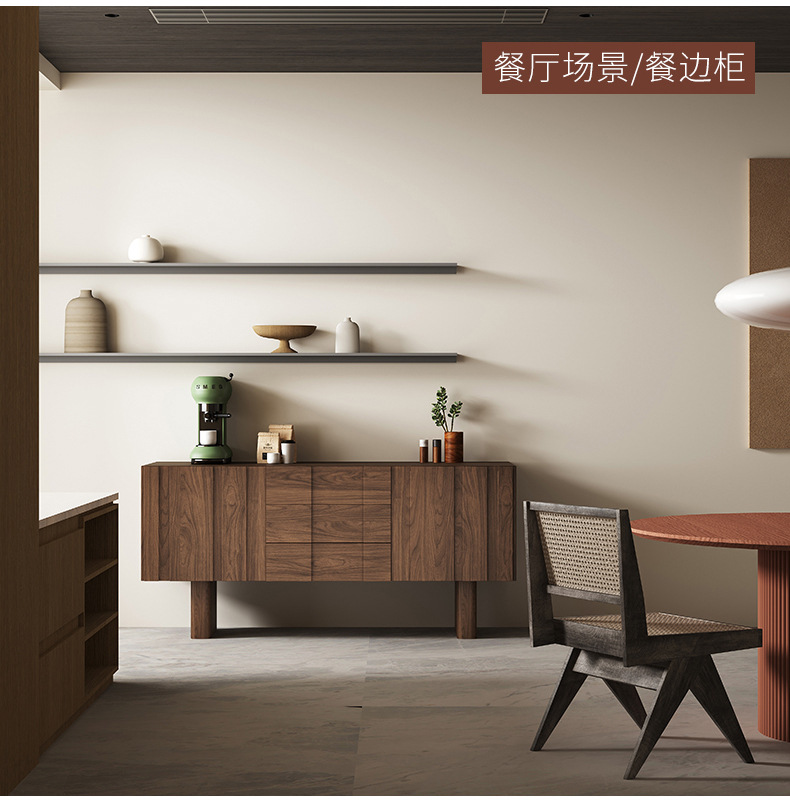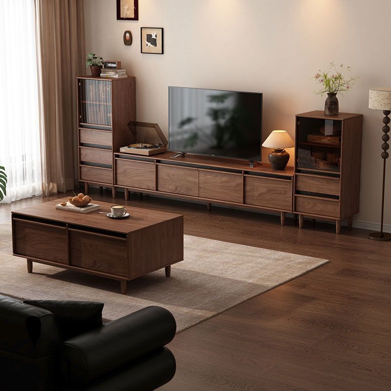 北欧简约实木落地电视柜胡桃色储物柜客厅家用中古风地柜茶几组合