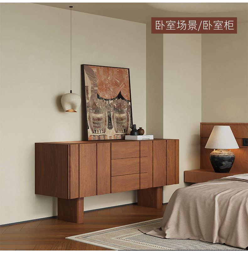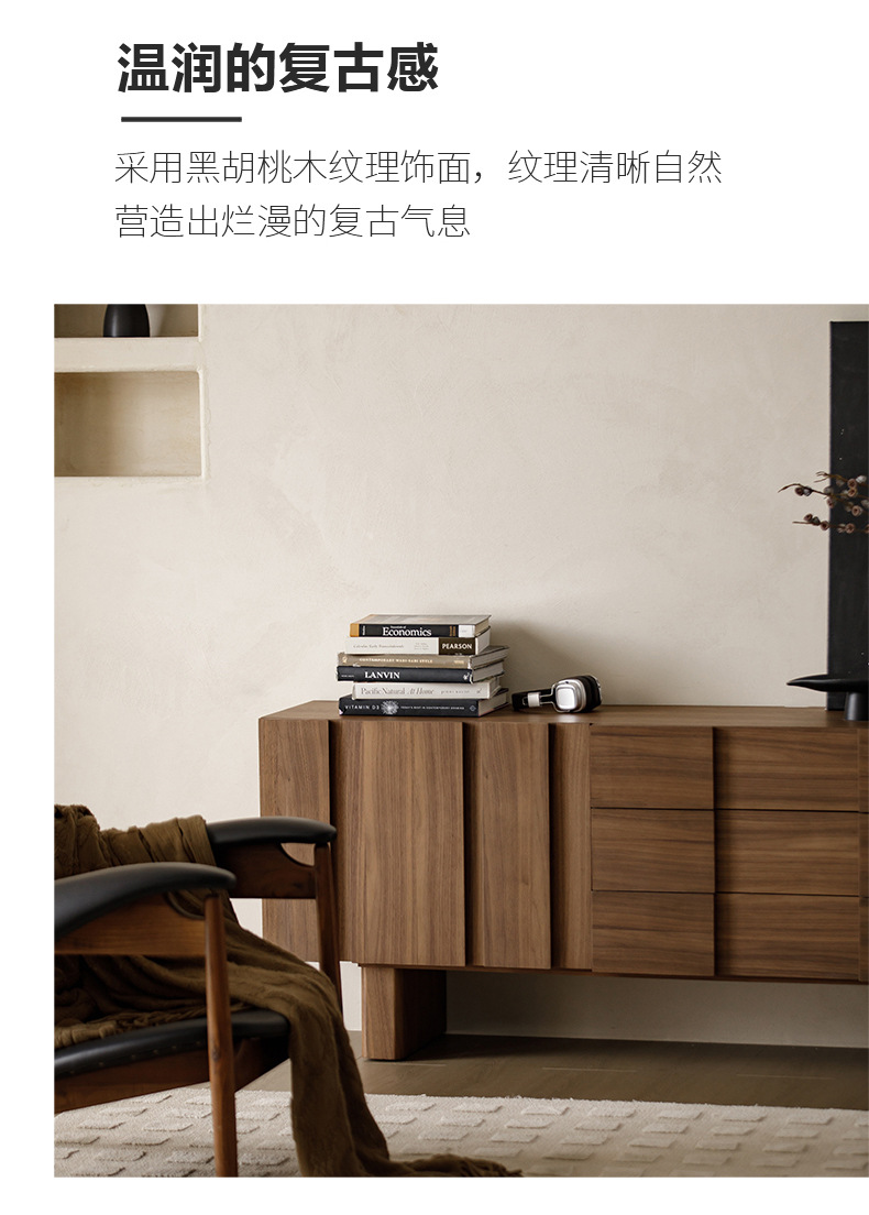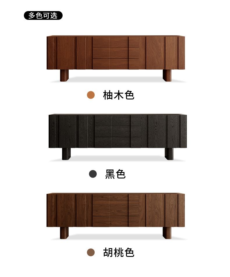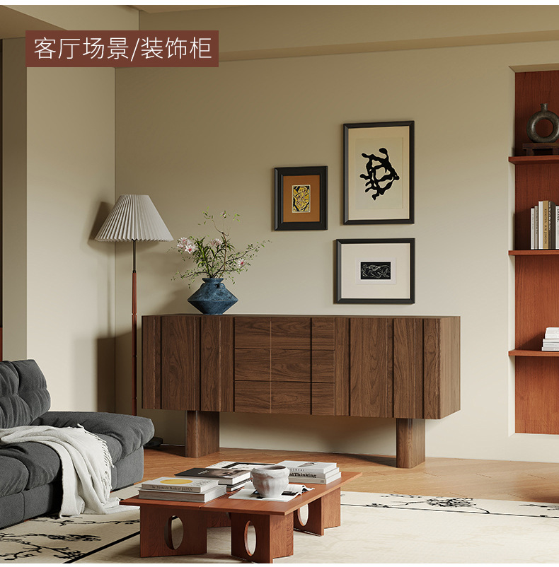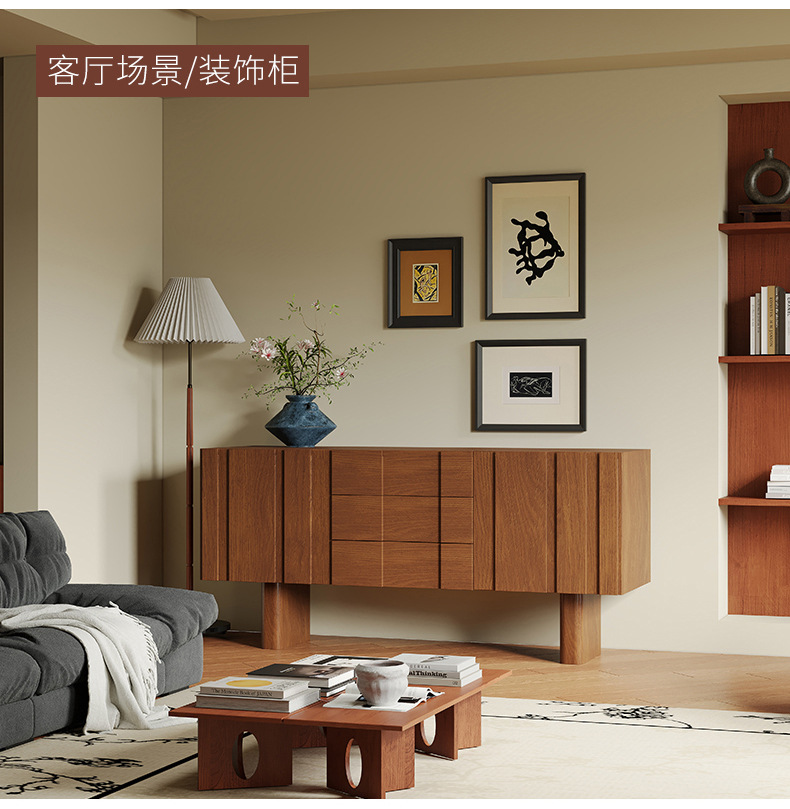 实木电视柜落地中古风客厅收纳储物柜一体小户型2025新款边柜组合