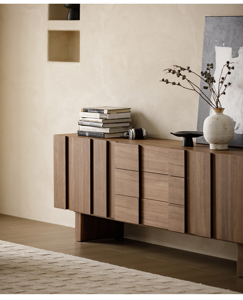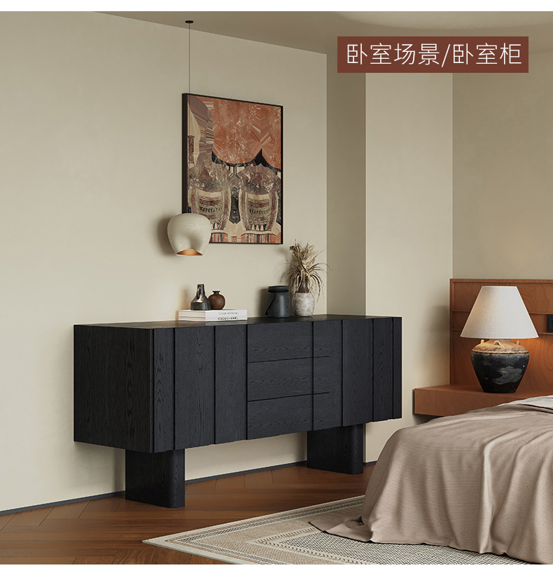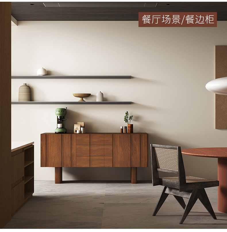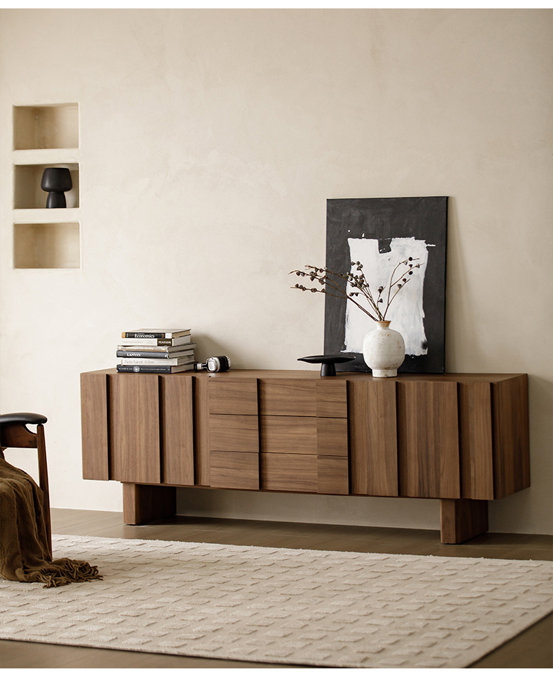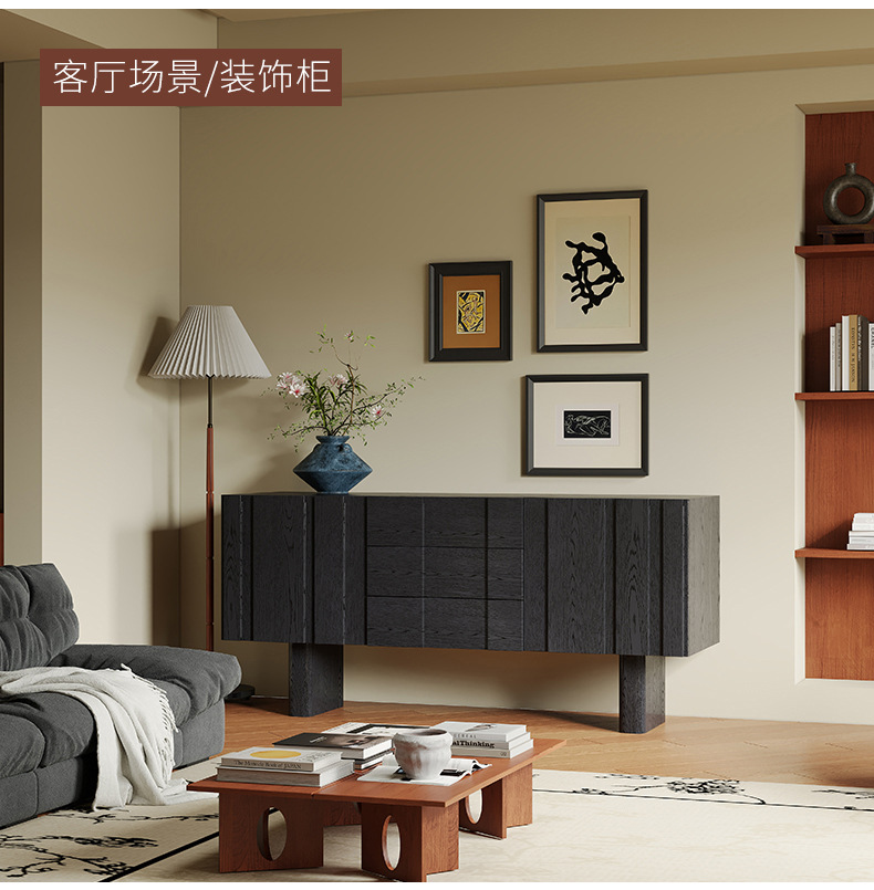实木电视柜落地中古风客厅收纳储物柜一体小户型2025新款边柜组合