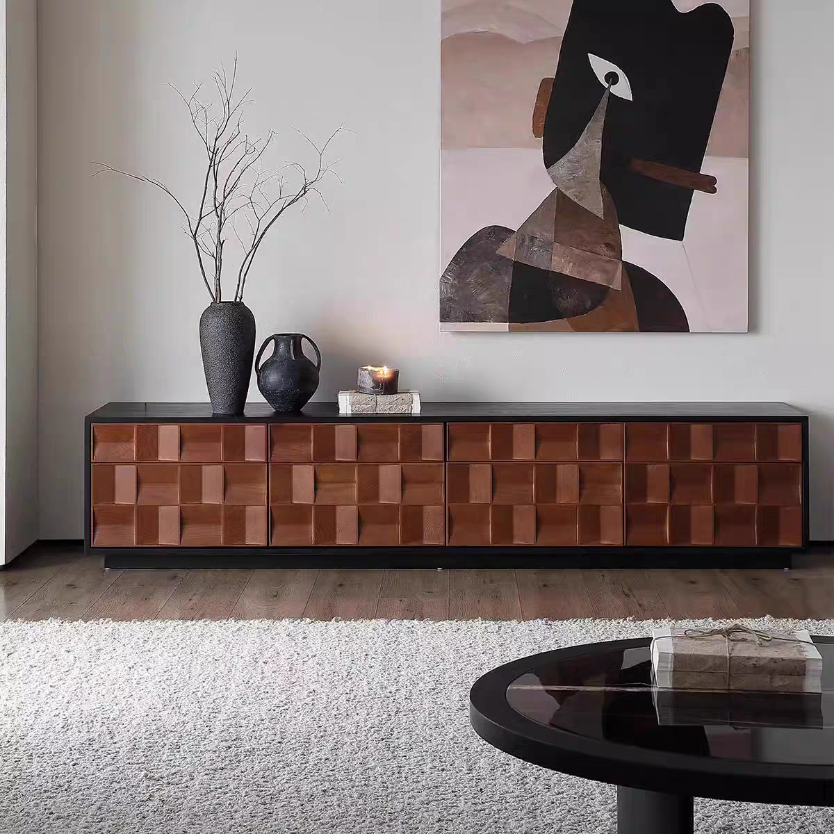 北欧クラウド無垢材テレビキャビネットモダンシンプルなリビングルームの組み合わせ小さなアパートログチェリー材晴天スタイルフロアキャビネット