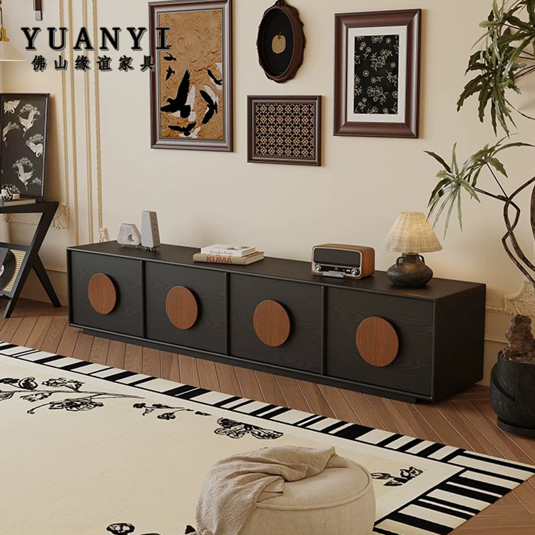 フレンチレトロテレビキャビネットとコーヒーテーブルの組み合わせリビングルーム新しいミッドセンチュリースタイルブラックテレビキャビネットホーム無垢材フロアキャビネット