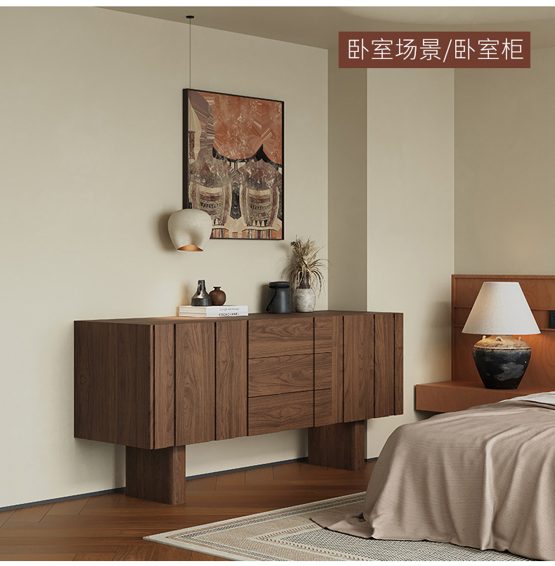 北欧無垢材チェスト ブラックウォールナット引き出しキャビネット シンプルな小さなアパートの寝室 リビングルームの収納 収納キャビネット 6段チェスト