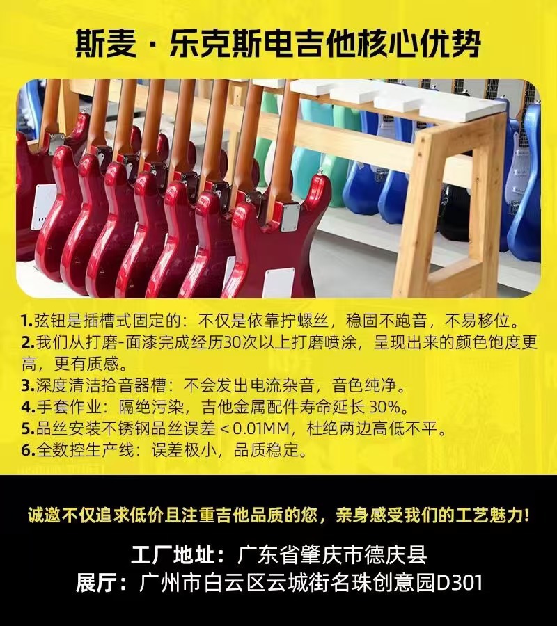 谁懂啊!新手学电吉他最怕踩坑:品丝刮手、琴颈易变形、保养难… 但这把 L-G1MR 斯麦 ST 电吉他,直接把 “新手痛点” 全解决!更关键的是 ——14 年乐器出口大厂直供,批发价仅 300 元,不管是开乐器店、做外贸批发,还是新手自练,闭眼入都不亏!