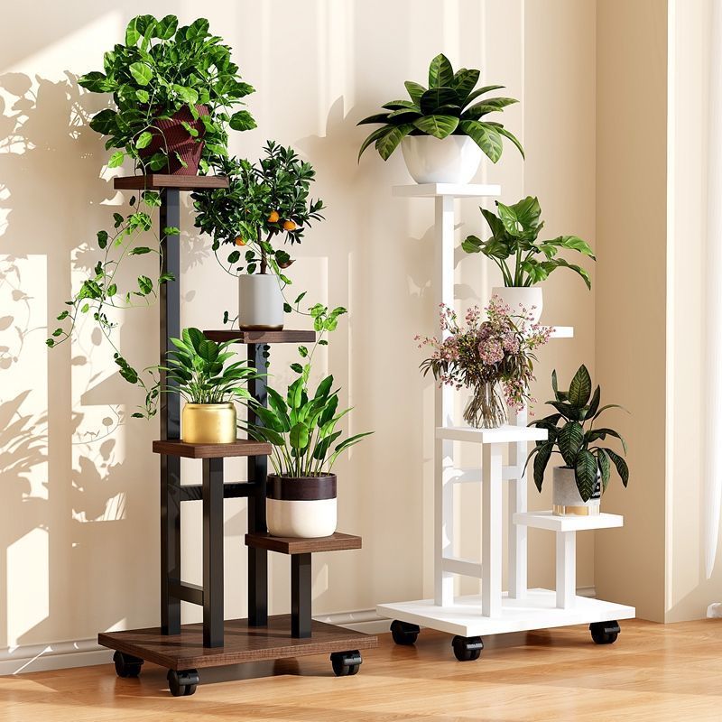 多层花盆托架多肉植物层架可移动阳台花架子客厅落地式铁艺置物架