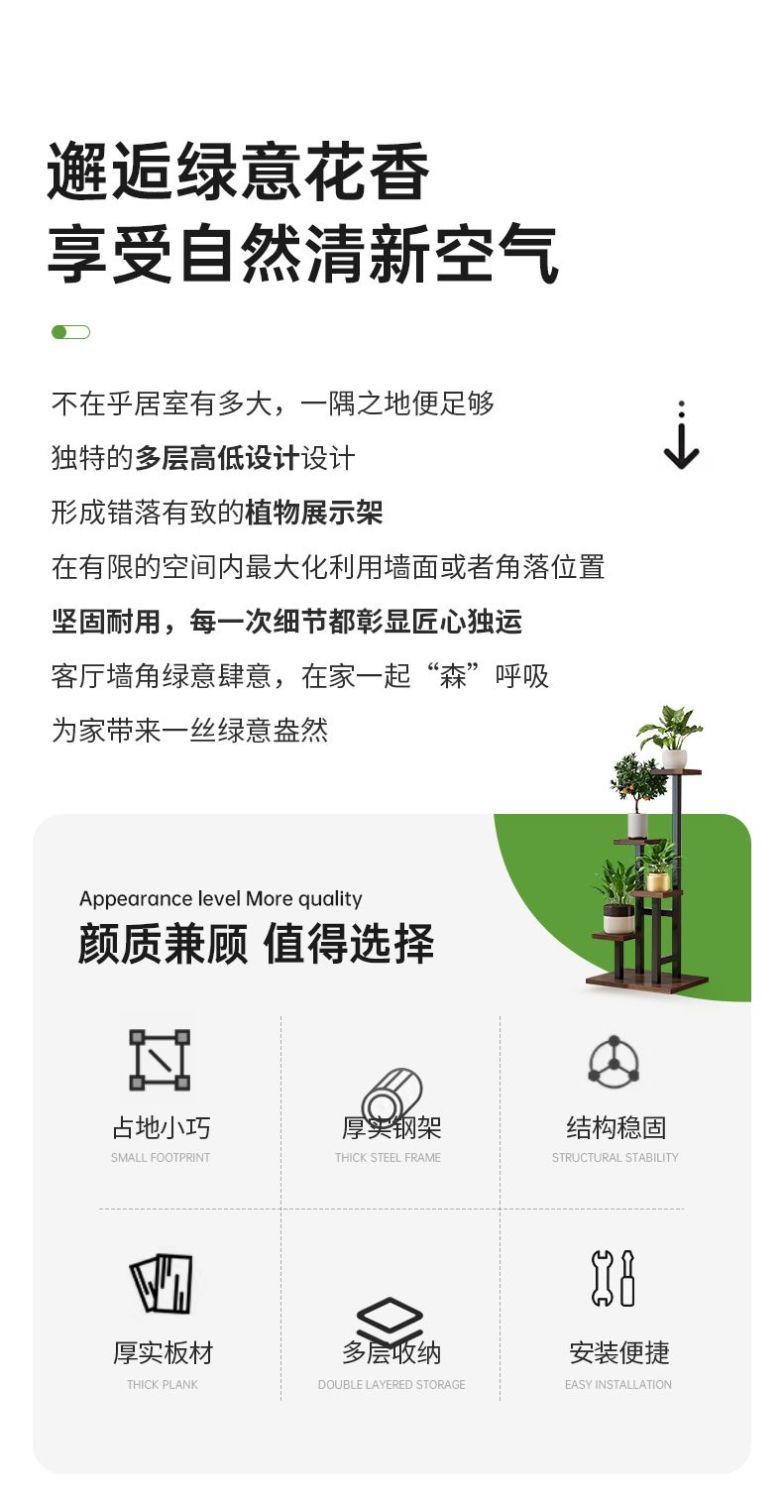 高颜値鉄芸花架床置き式植木鉢棚多層省空間室内外客間ベランダ緑の花棚