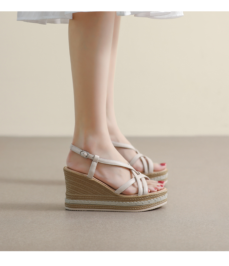 女性のためのウェッジサンダル夏 2025 新しいボヘミアンスタイル多用途アウターウェア厚底滑り止めハイヒールローマンシューズ