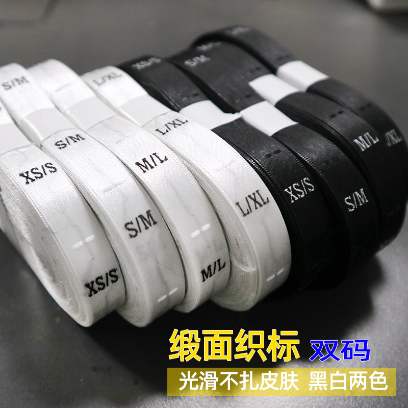 既製服ダブルサイズラベルサテンリボンS/M洗える衣料品コードラベル卸売M/L織ラベル黒と白