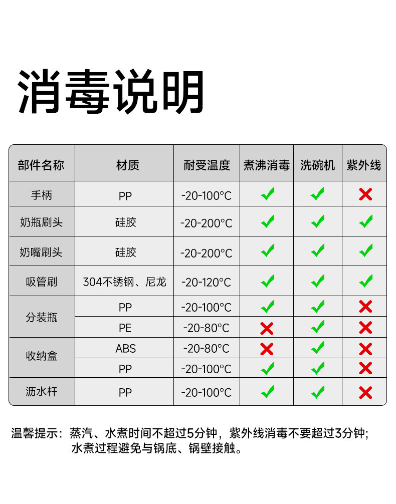 产品材质:PP+硅胶+304不锈钢+尼龙+PE+ABS