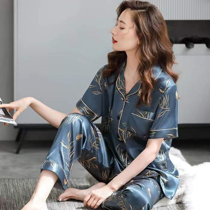 新しい韓国スタイルの女性用アイスシルクパジャマ、夏用半袖ズボン、薄手の夏用シルクスーツ、中年母親向け