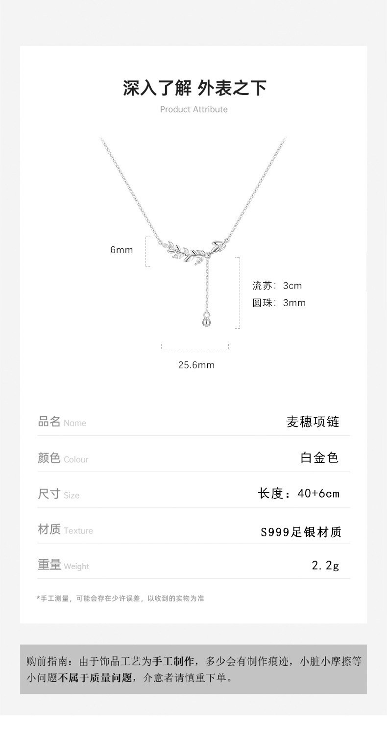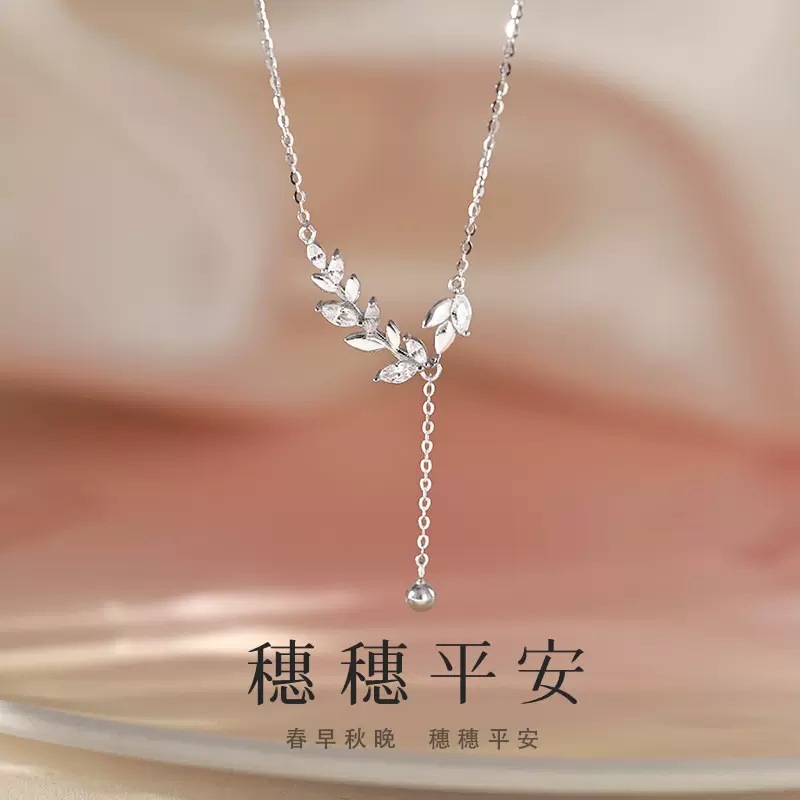 S999 純銀小麦タッセルネックレス女性の甘い気質小さな新鮮な鎖骨チェーンスターリングシルバーネックレスバレンタインデーのギフト